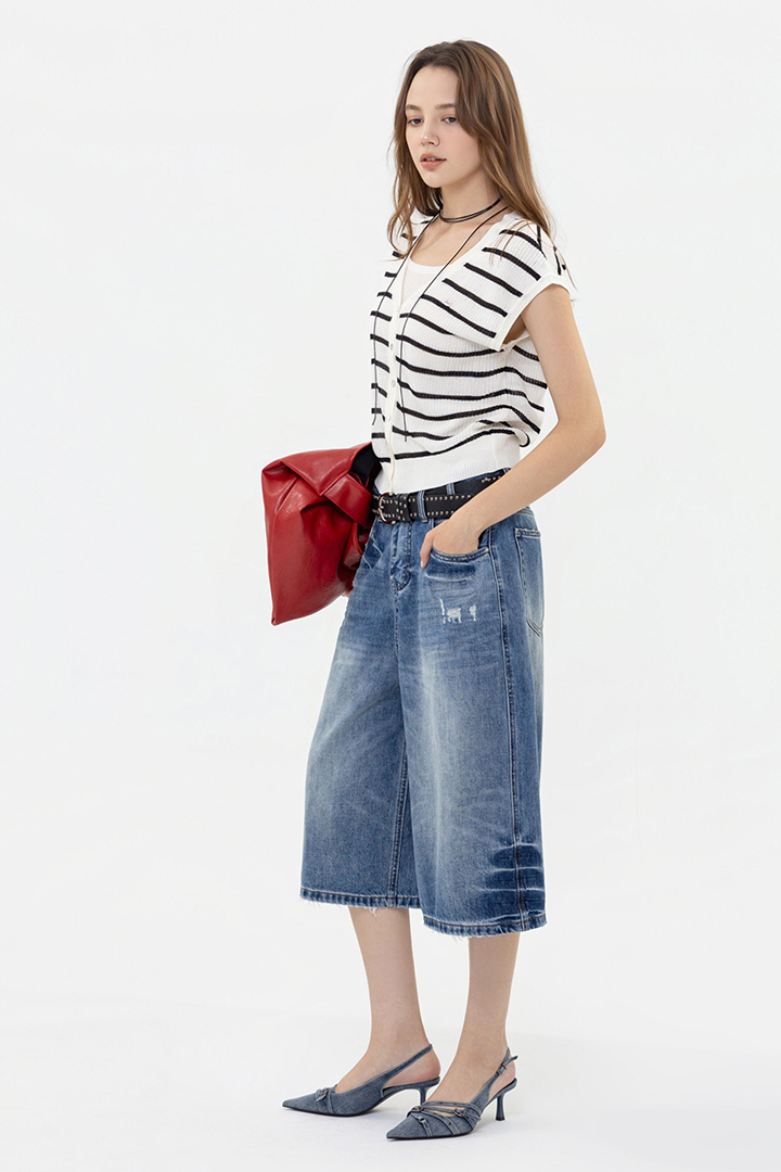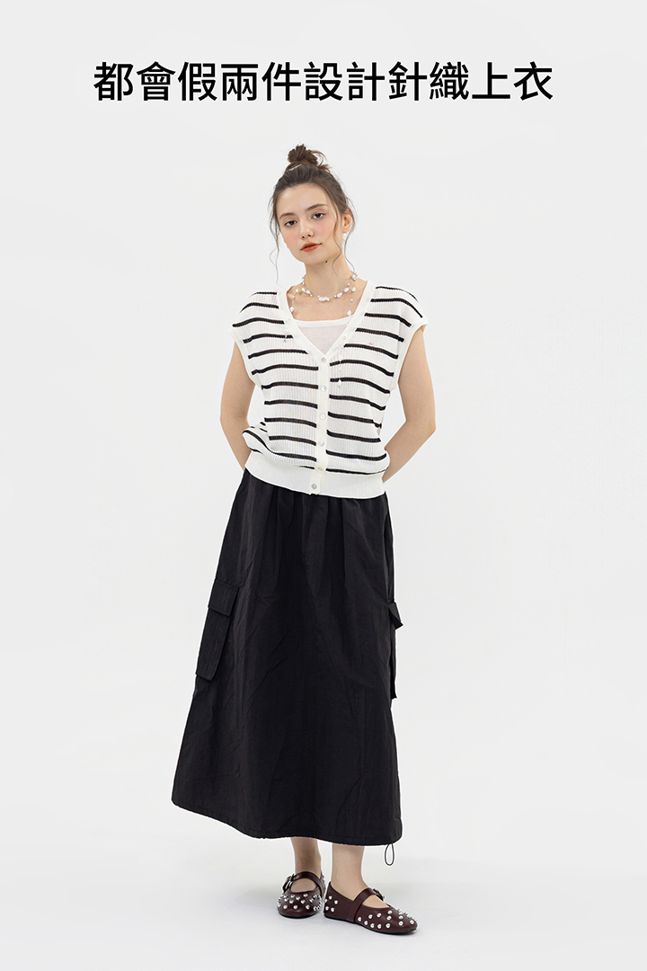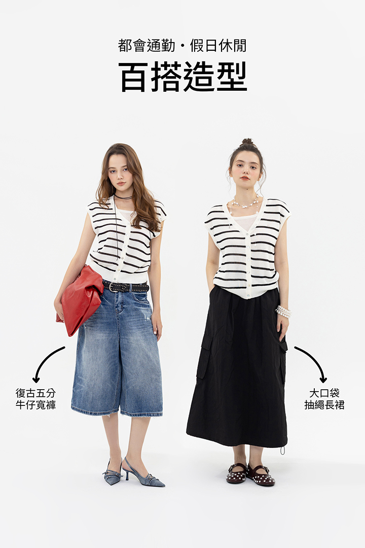 層次感假兩件設計,百搭條紋、亮眼紅選擇。