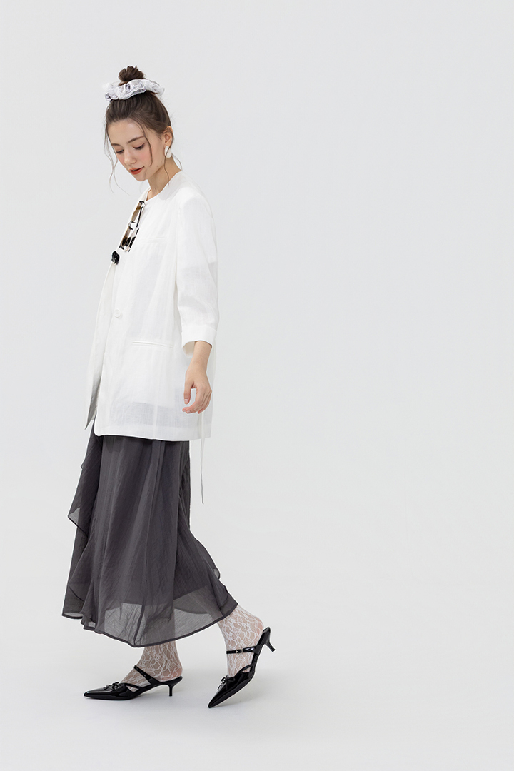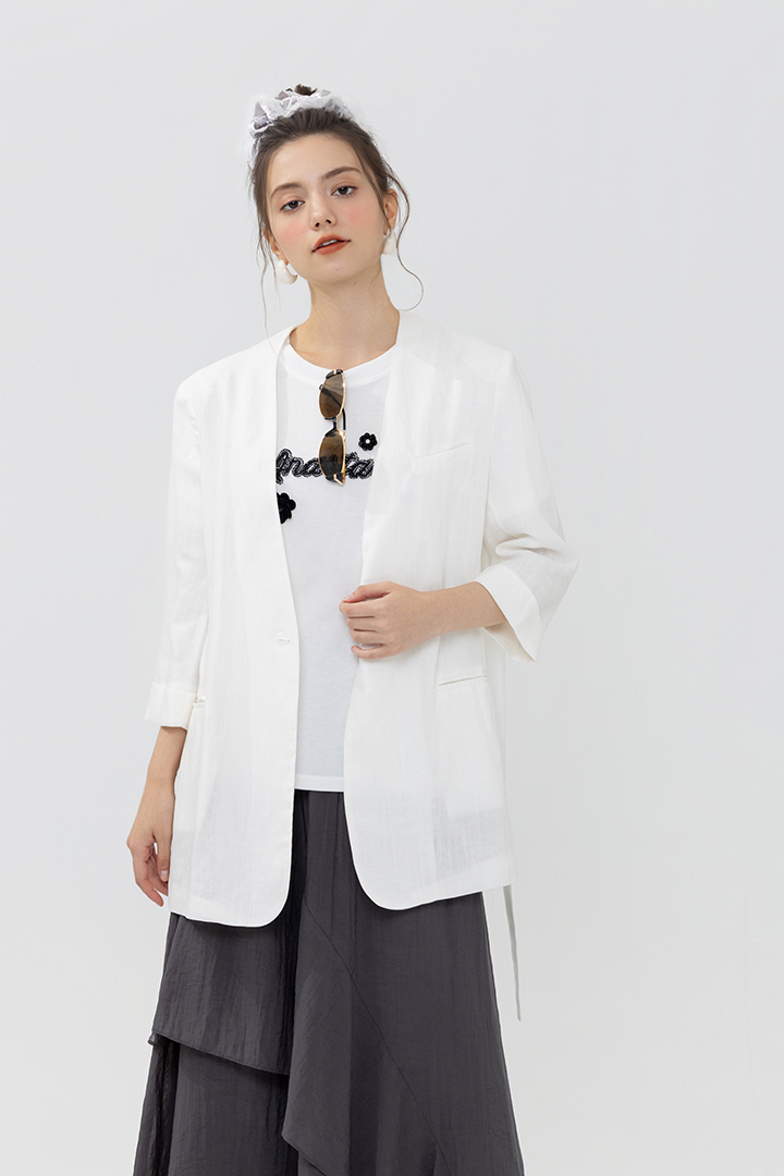 俐落剪裁腰帶設計,展現專業優雅氣場。