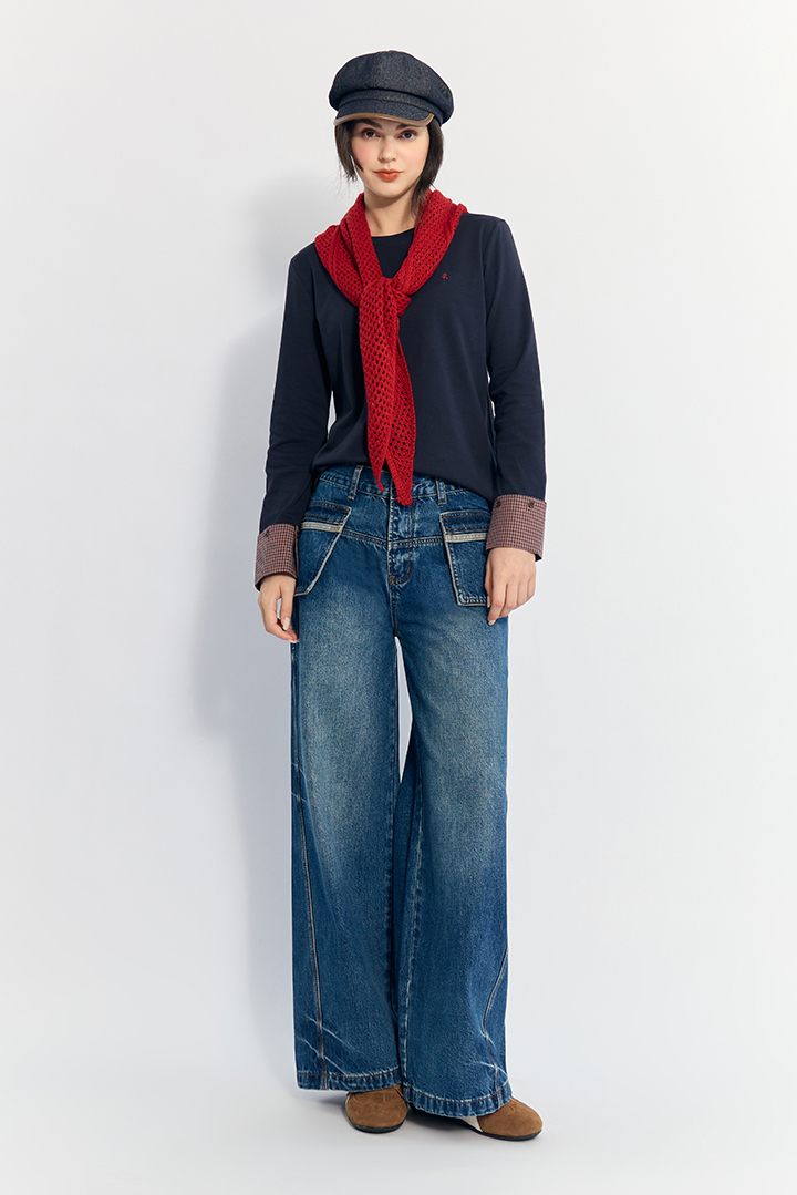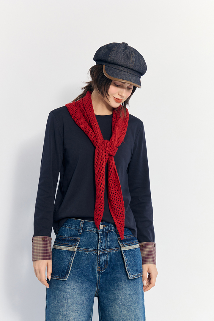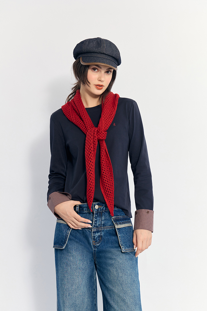 撞色格紋袖口設計 展現俐落層次造型