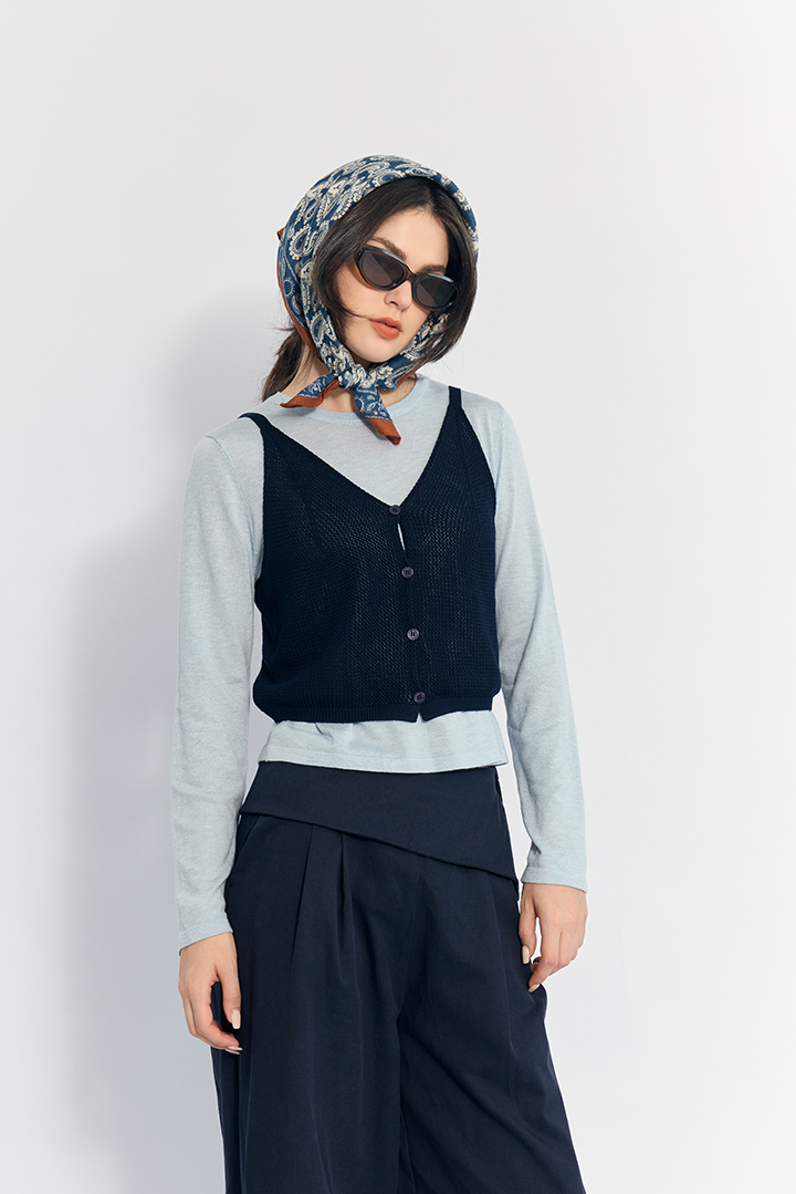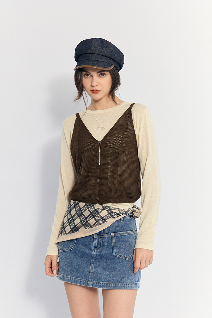 韓系甜美風格,兩件式針織設計展現層次俐落與柔美氣質。