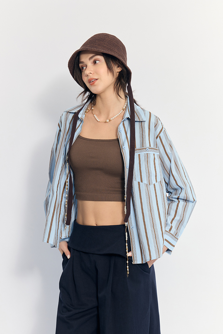 亮眼條紋絕美配色,俐落剪裁展現清新時尚與百搭魅力。