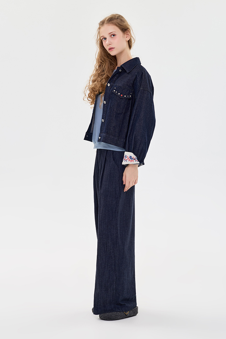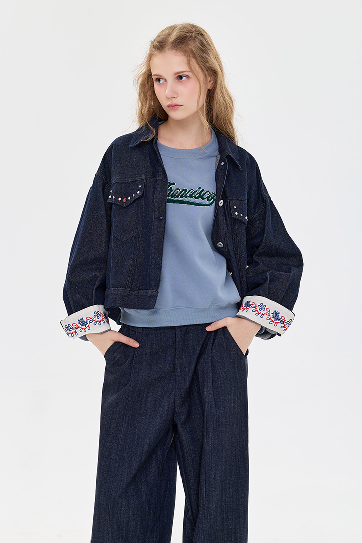 ✦袖口重工刺繡 袋口色釘裝飾 細節感直接拉滿