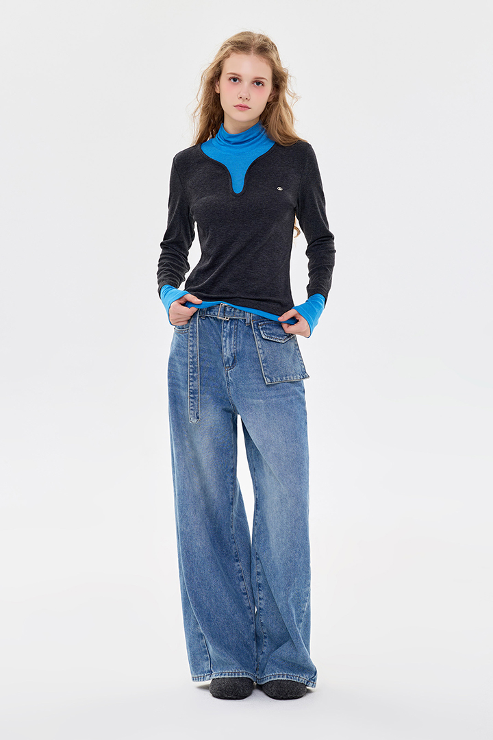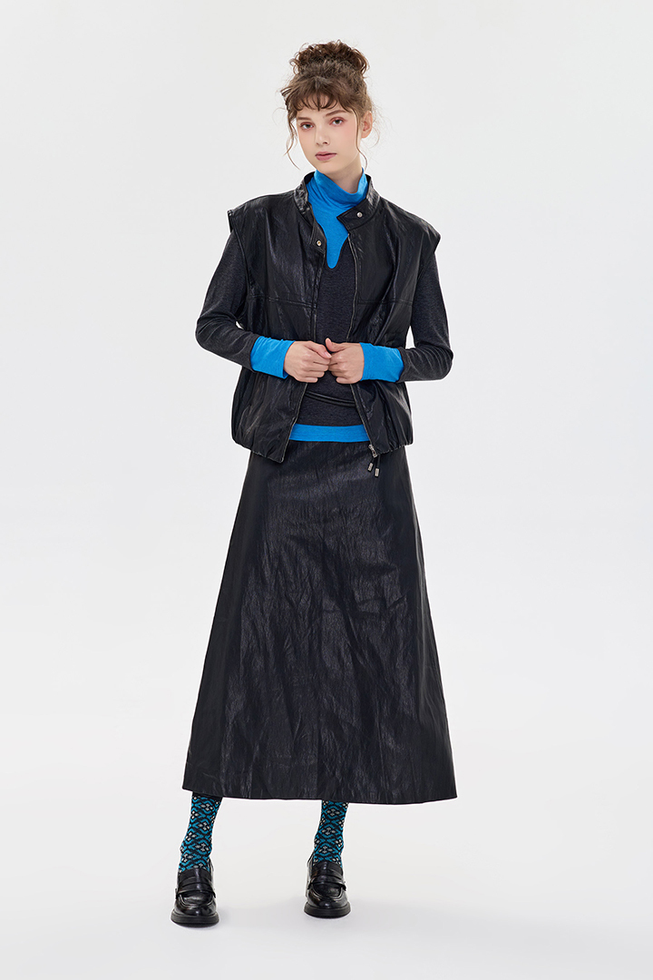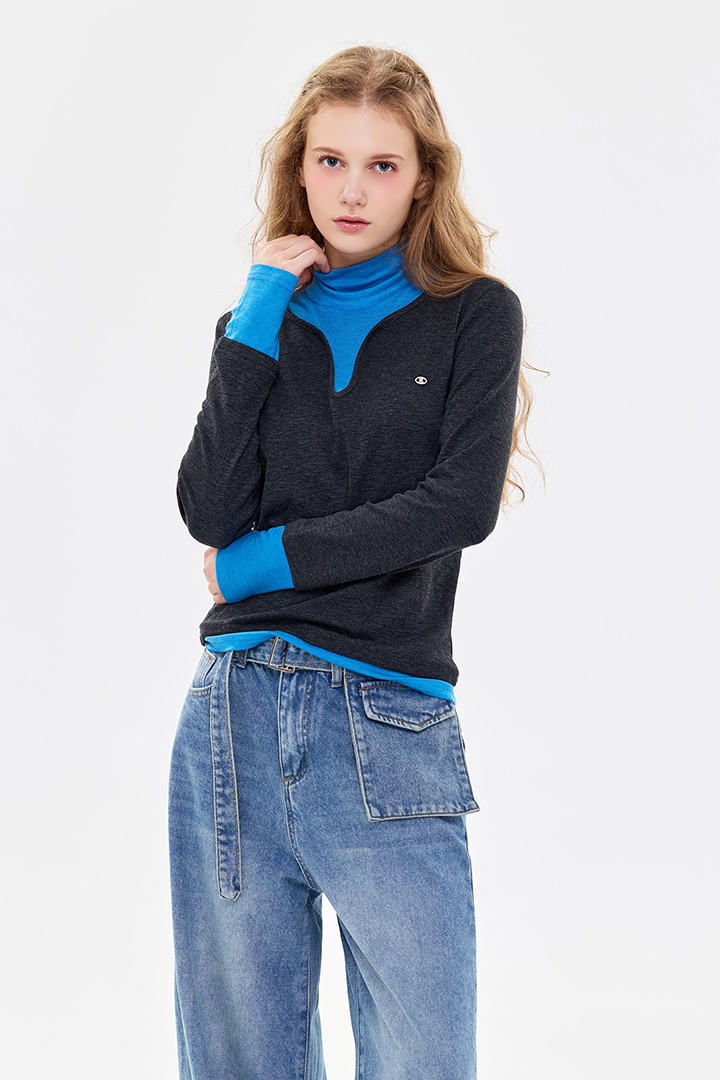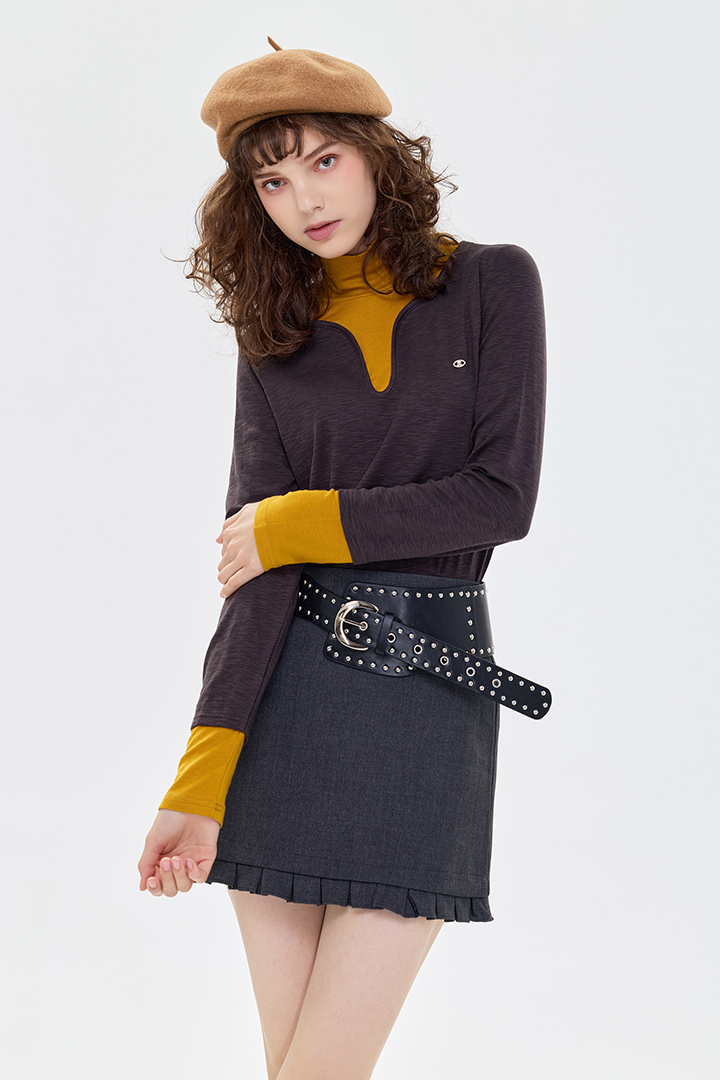 亮色拼接增層次,立領線條俐落,剪裁清晰展現上身比例。