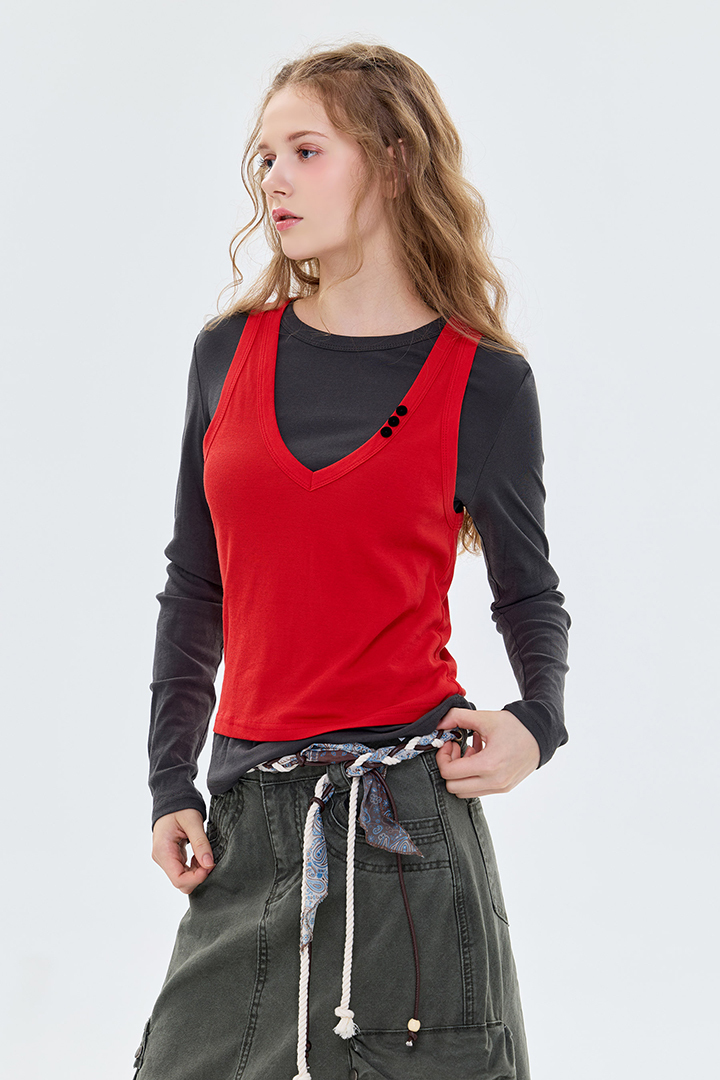 疊穿背心設計,版型貼合,日常穿搭簡單方便。