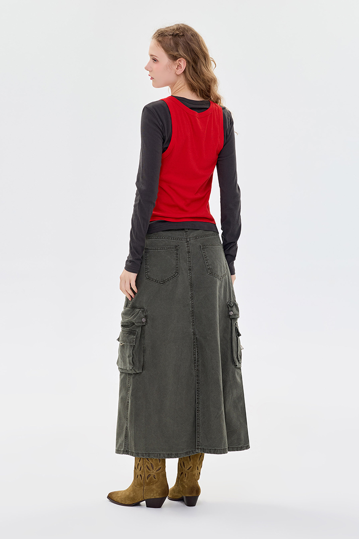 ✦溫柔的紅 疊加深灰內搭 打造錯落有致的層次感