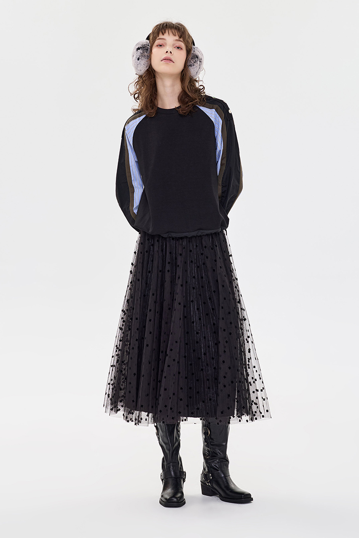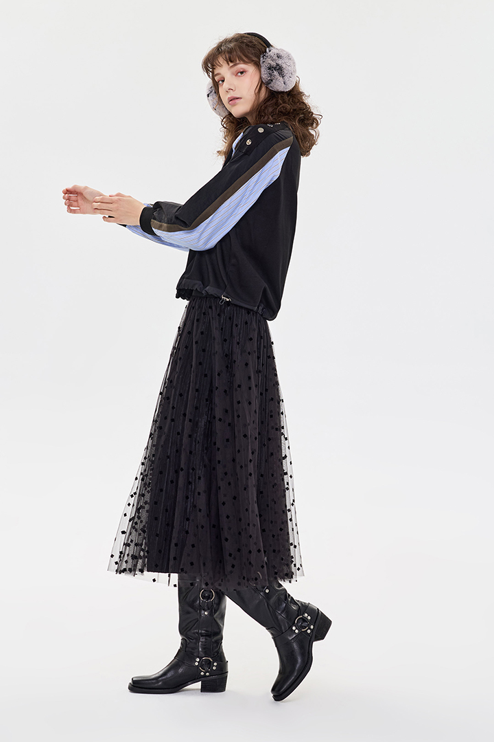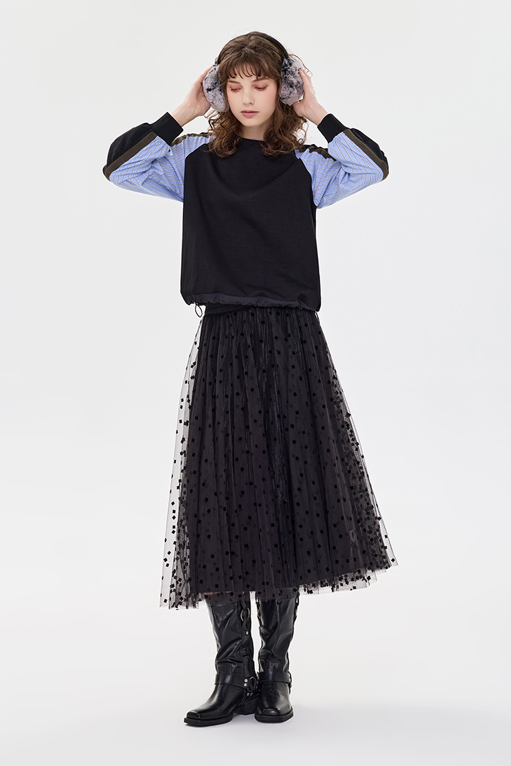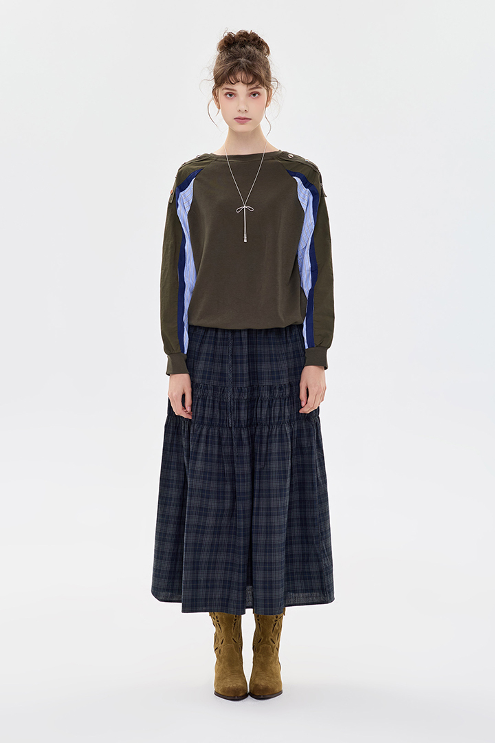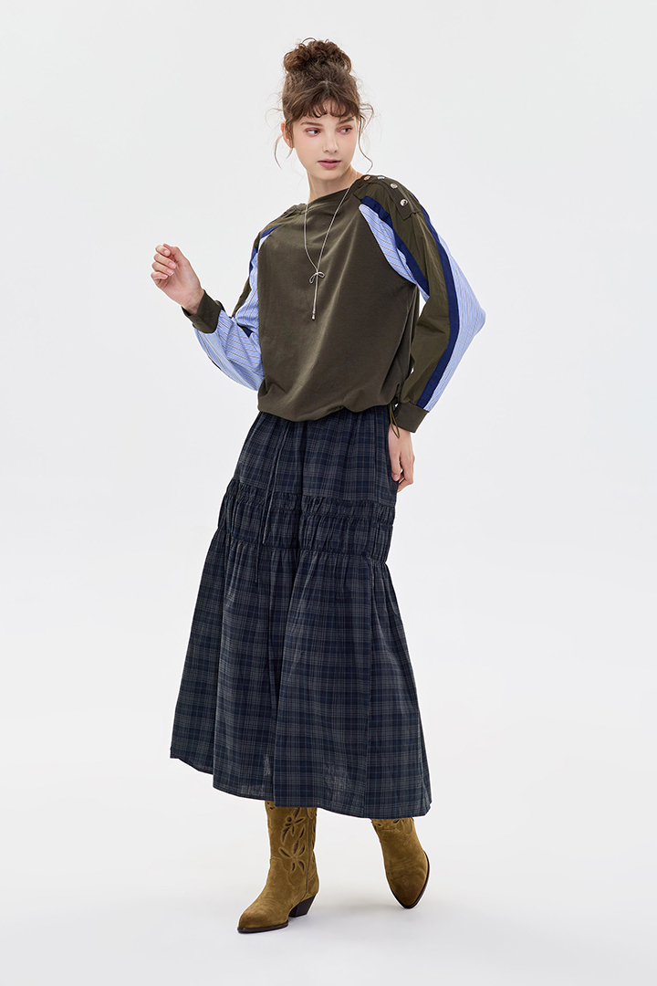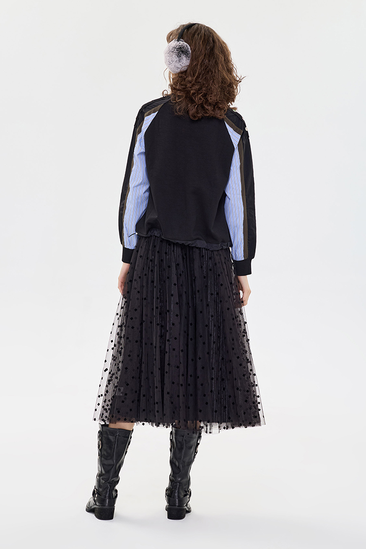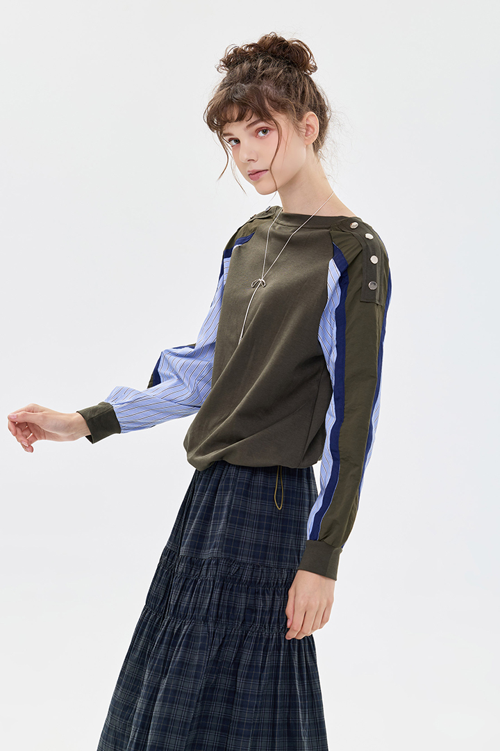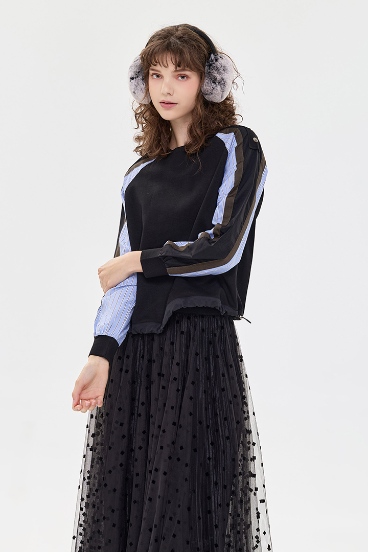 條紋拼接設計感明顯,布料舒適有挺度,剪裁俐落好搭配。
