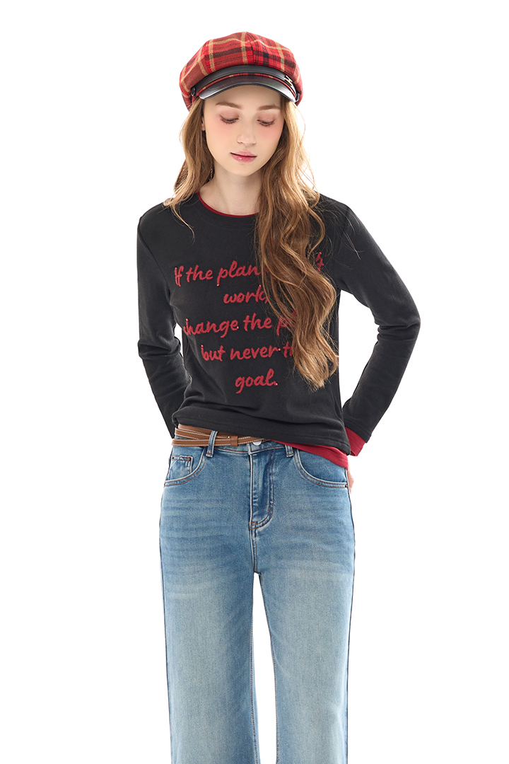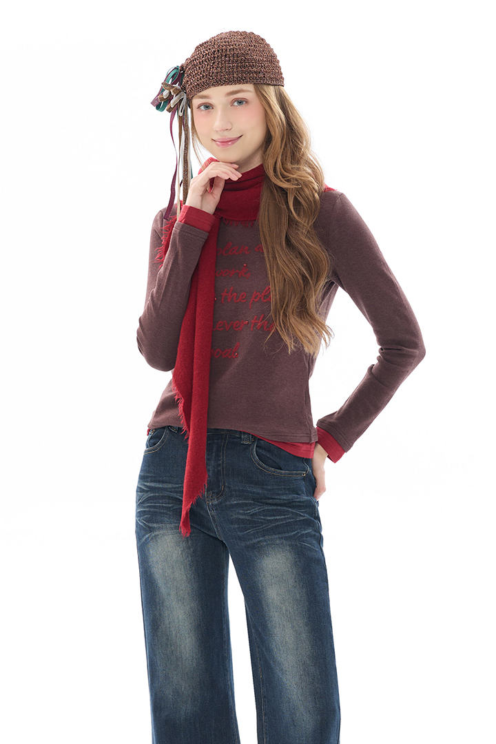 手寫刺繡假兩件設計,內磨毛保暖,冬日層次穿搭必備款