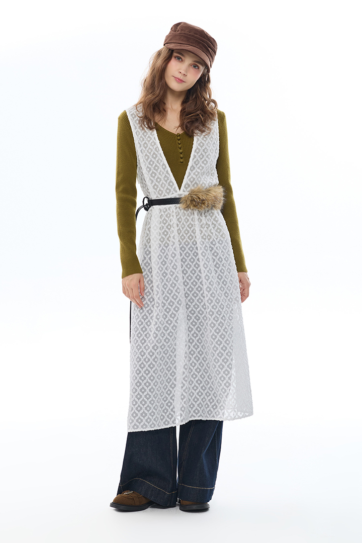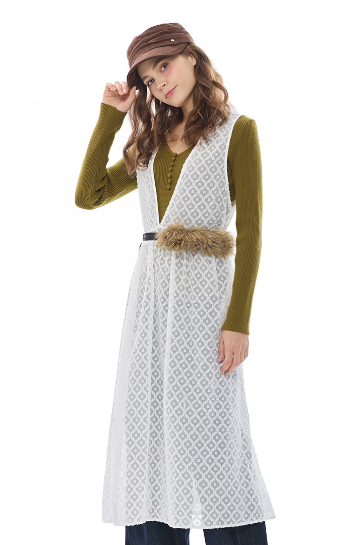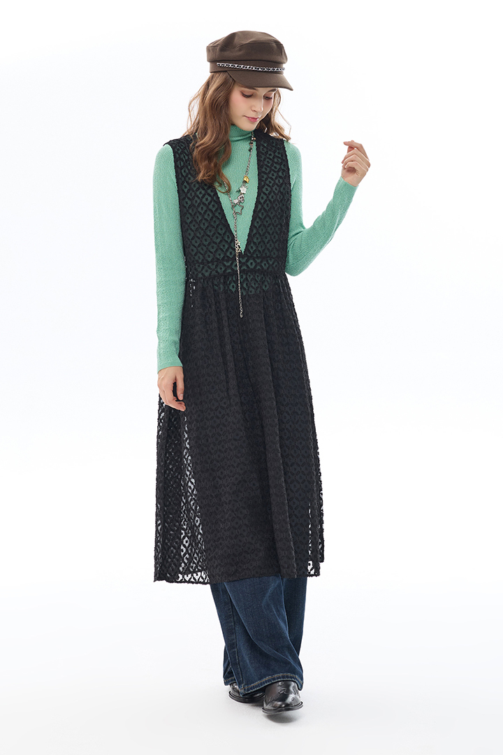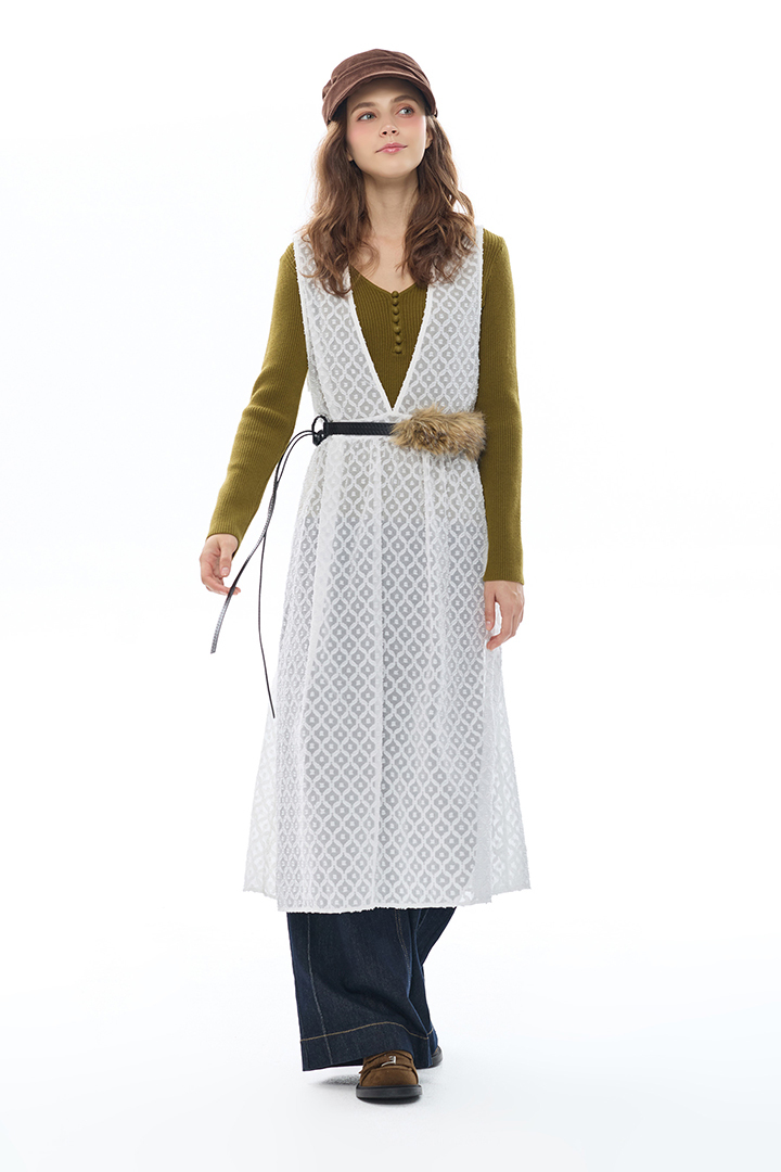 蕾絲V領層次設計,作為疊穿搭配,冬日造型溫柔加分
