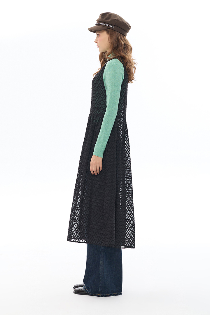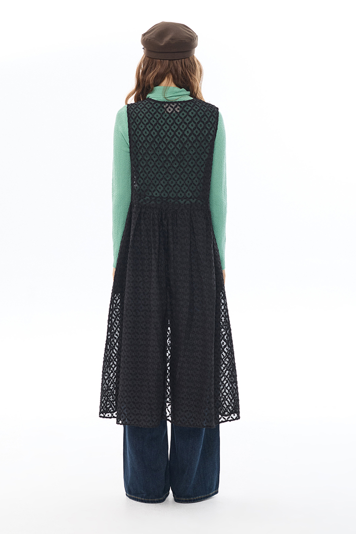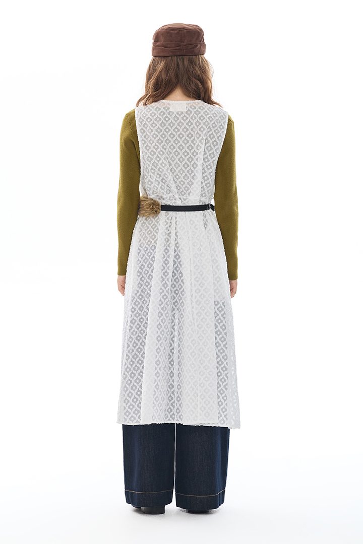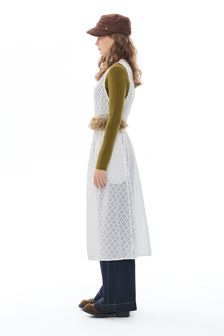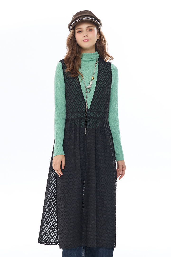 蕾絲V領層次設計,作為疊穿搭配,冬日造型溫柔加分