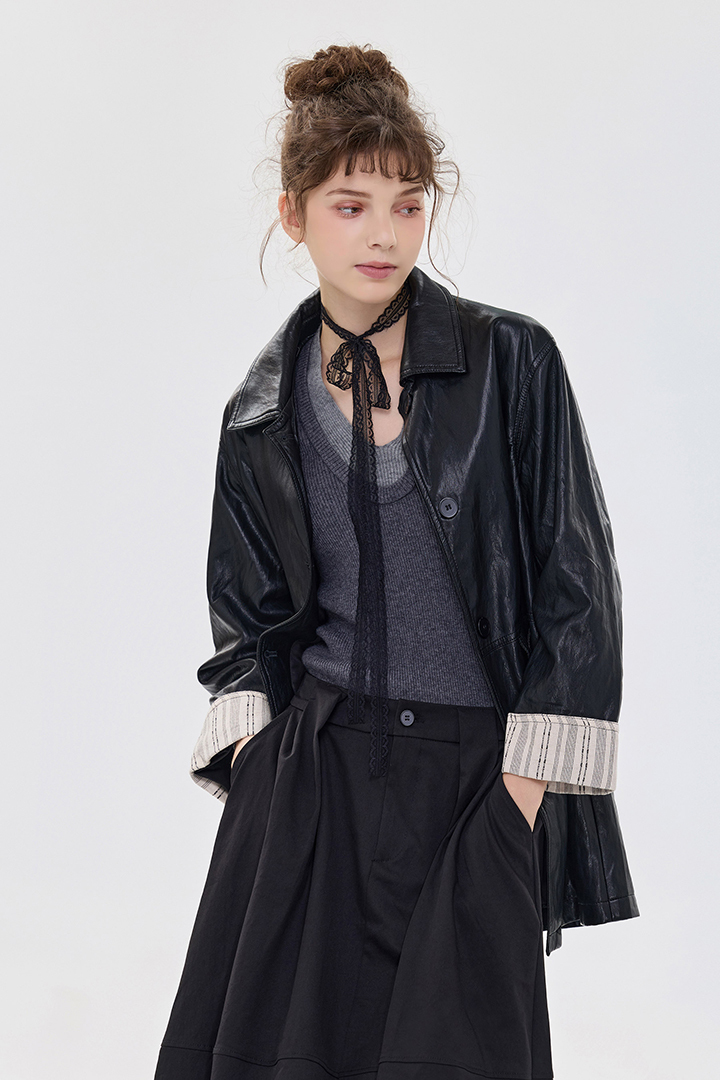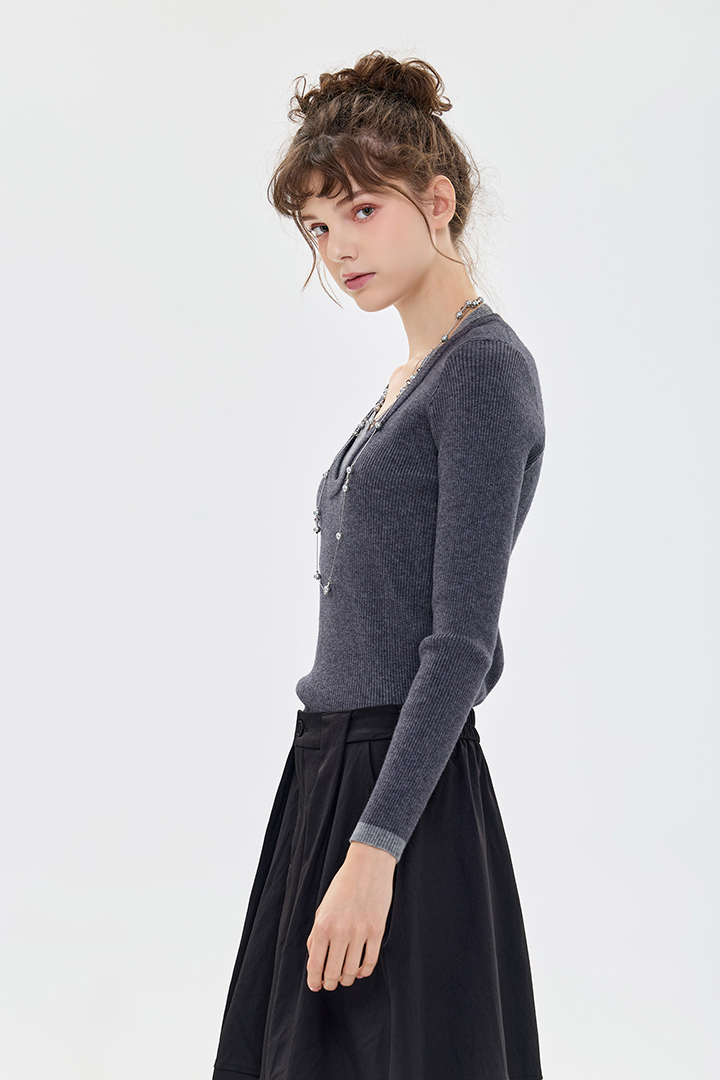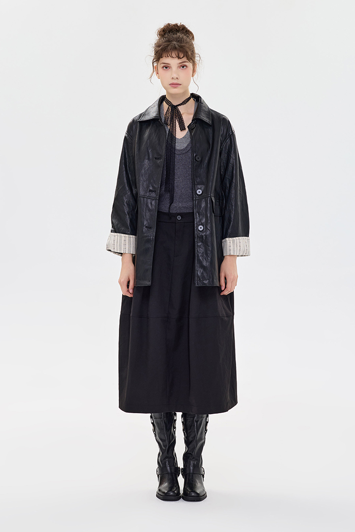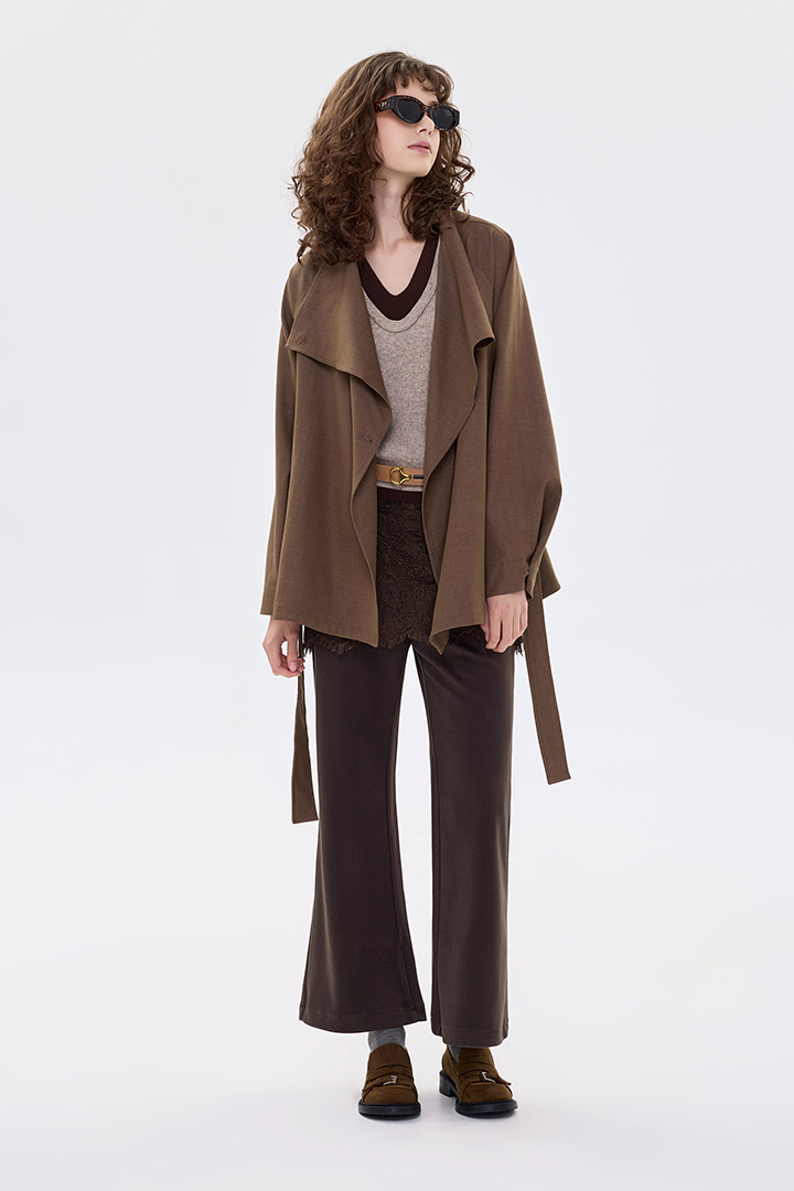 含羊毛針織材質,溫暖包覆,修飾身形。
