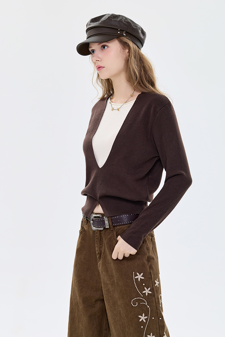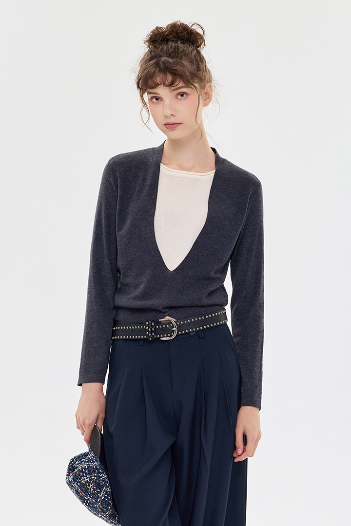 大U領假兩件設計,修飾鎖骨線條,打造小V臉。