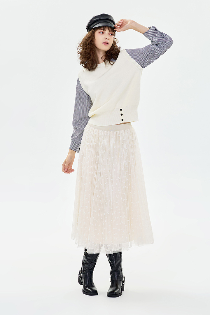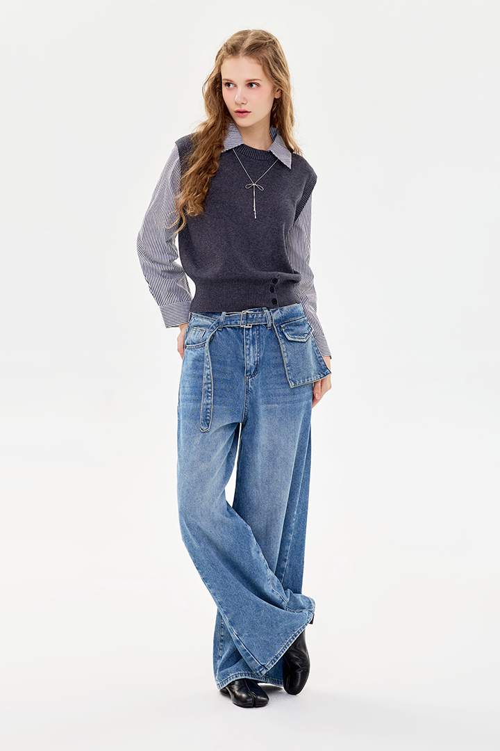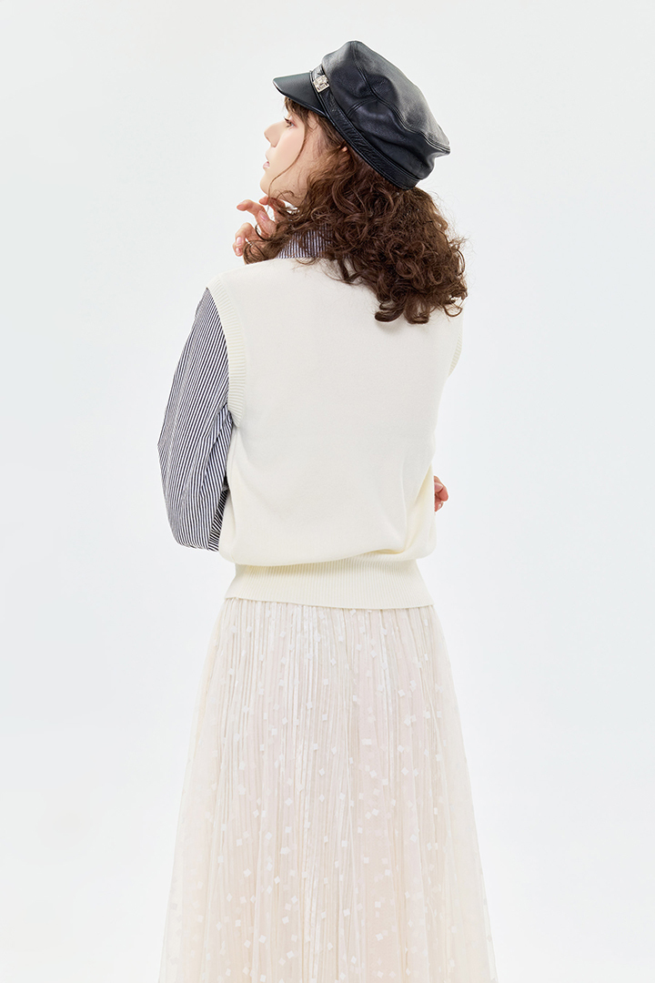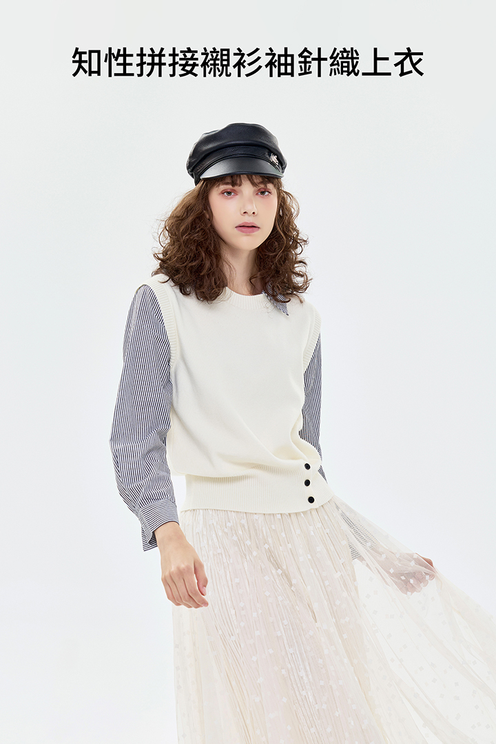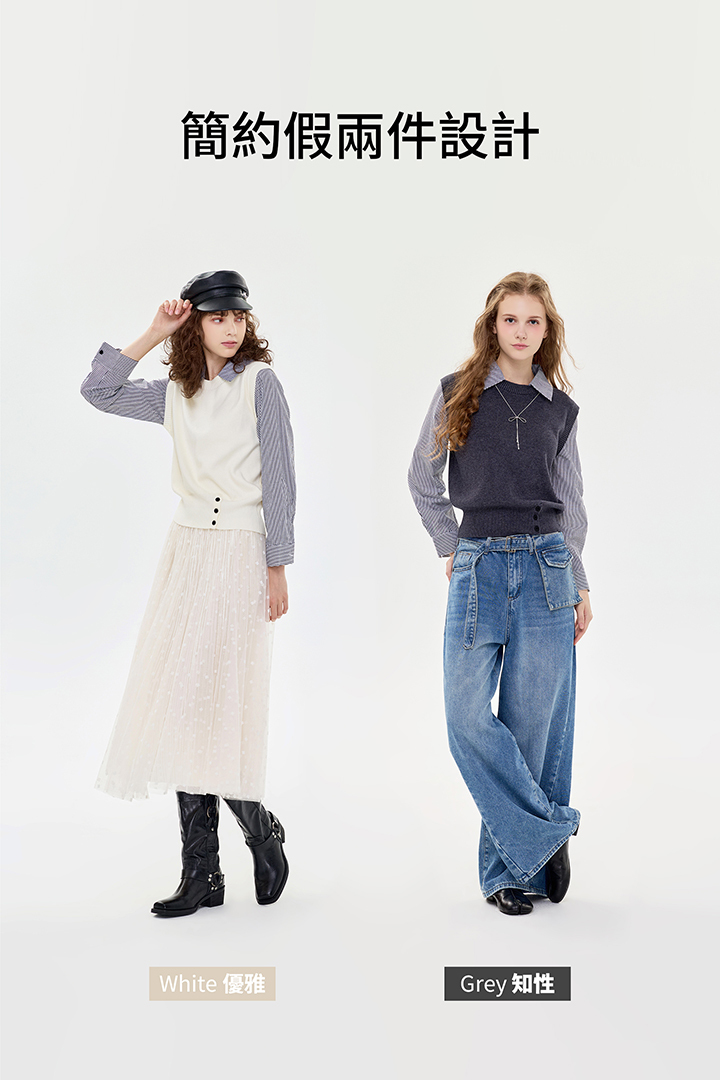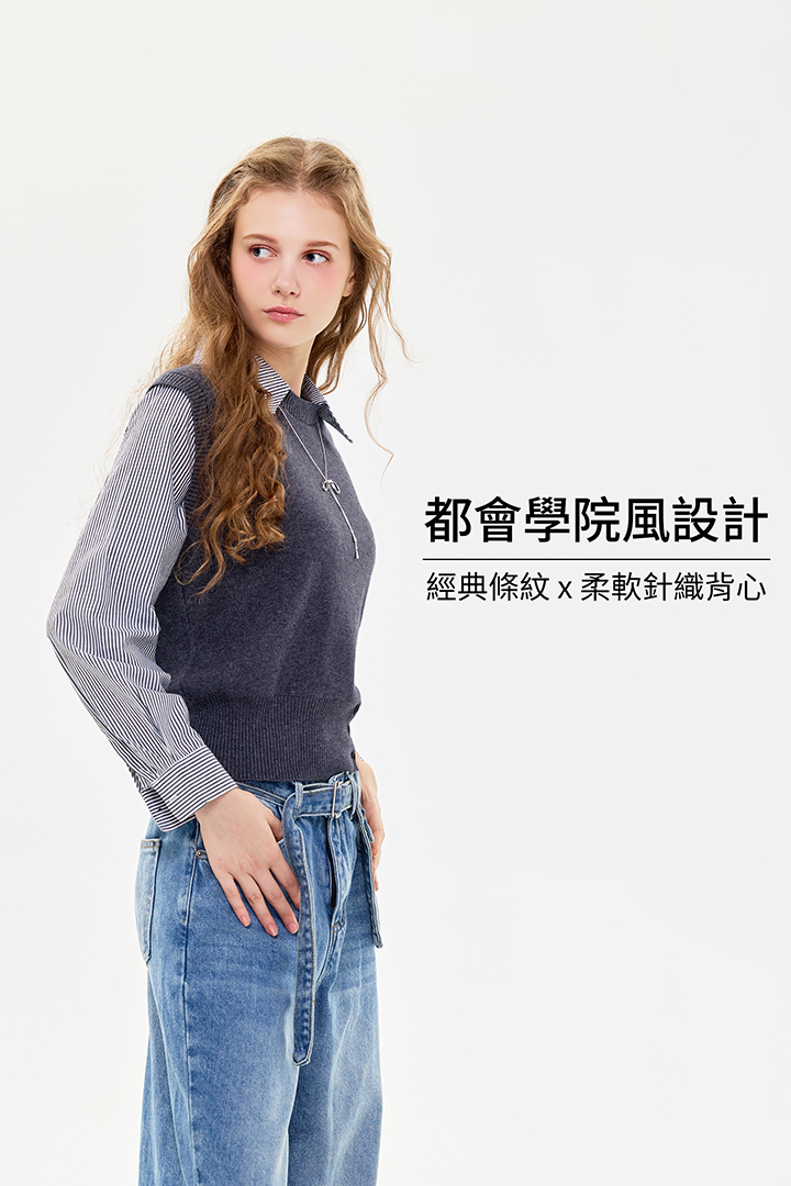 ✦針織背心拼接襯衫的效果 直接呈現多層次疊穿👍