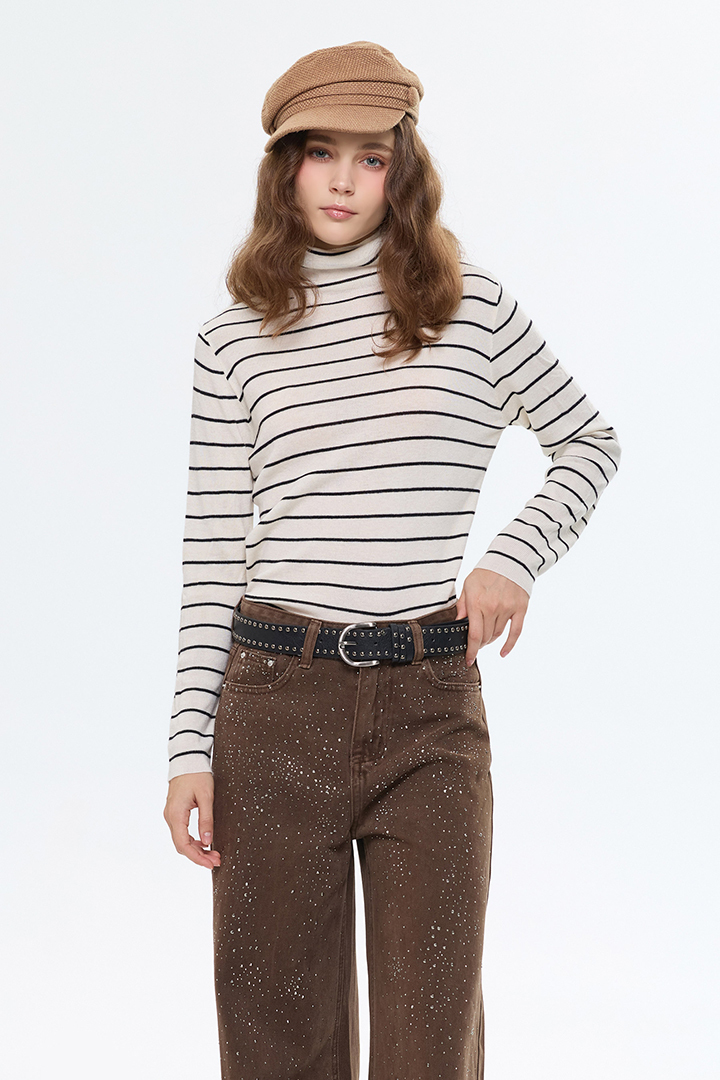 修身條紋高領針織上衣,溫暖貼身,冬日內搭必備百搭款