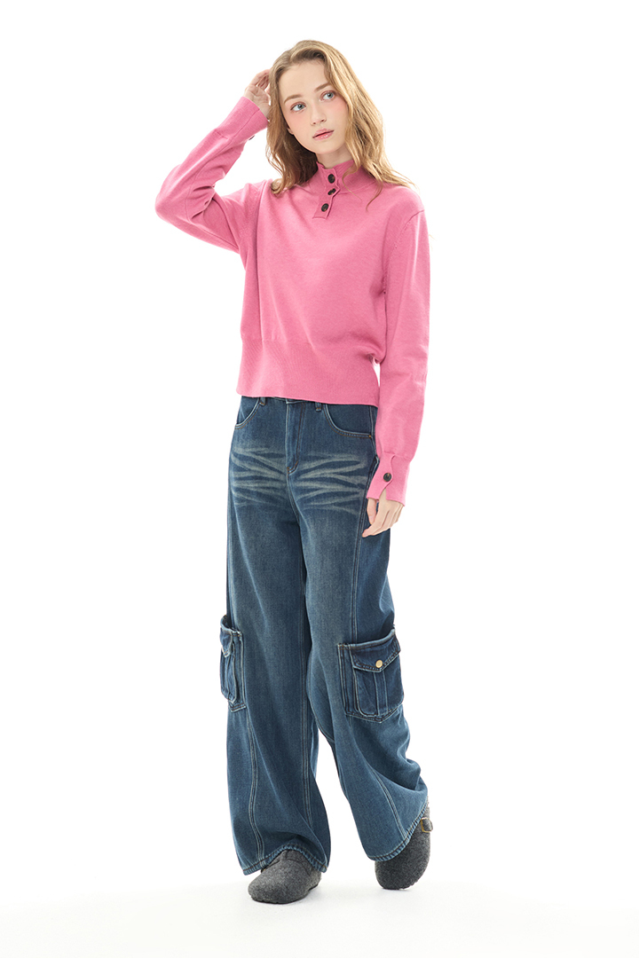 桃粉針織上衣柔暖親膚,亮色提氣色,冬日穿搭好心情