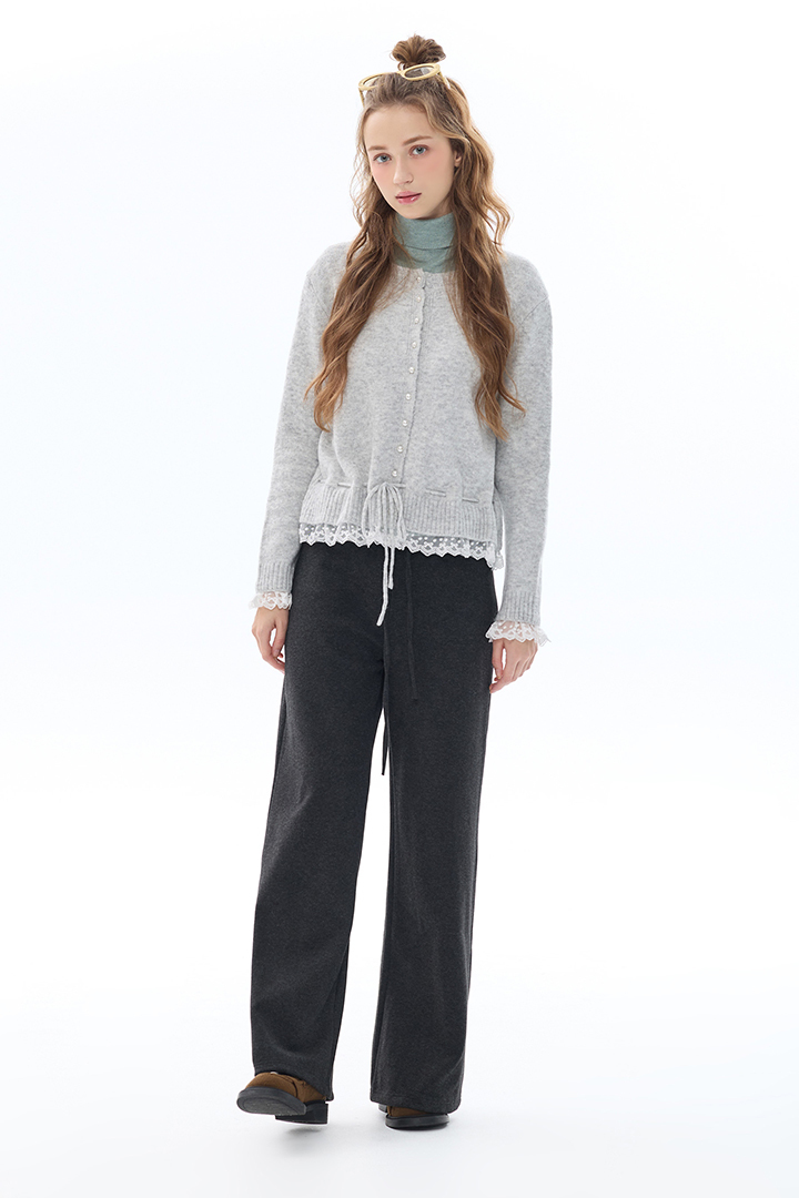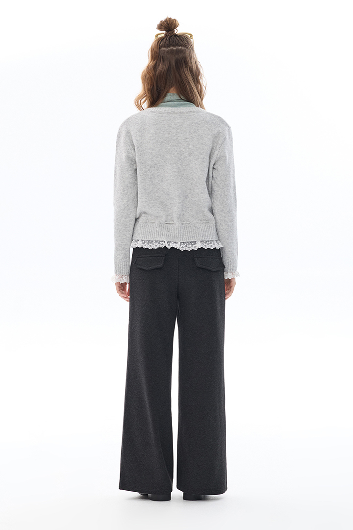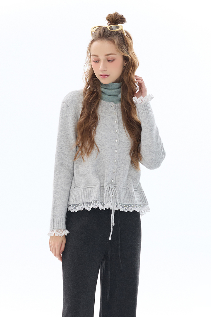 法式蕾絲抽繩開釦毛衣,柔暖包覆,冬日甜美層搭必備款