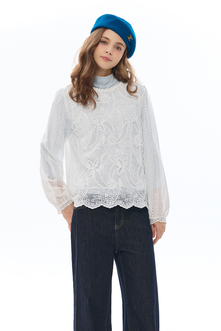 立體刺繡點綴細節層次,蕾絲質感展現柔美時尚魅力。