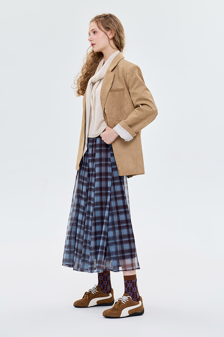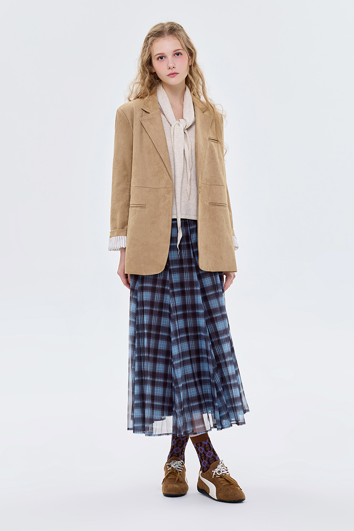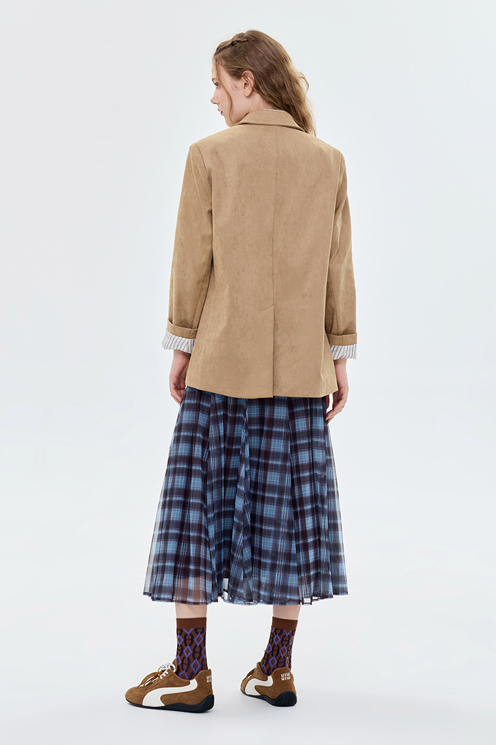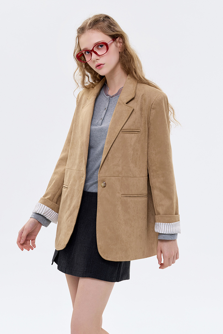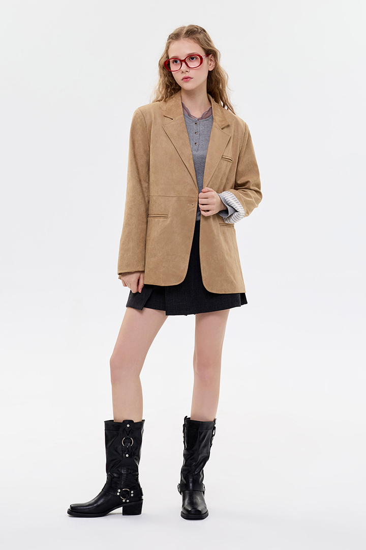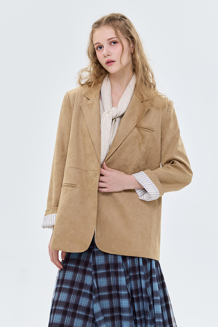麂皮絨面料質感細膩 展現俐落挺版輪廓