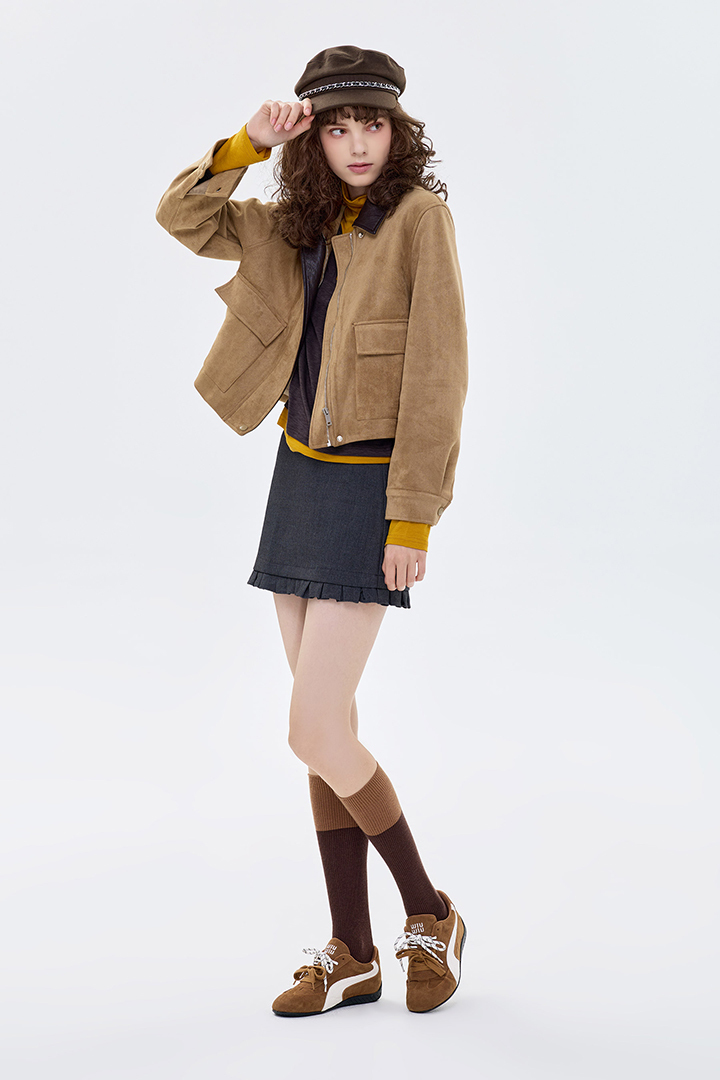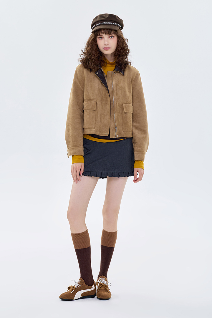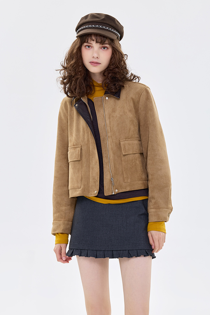 拼接領設計精緻,工裝版型挺度佳,線條俐落顯結構感。