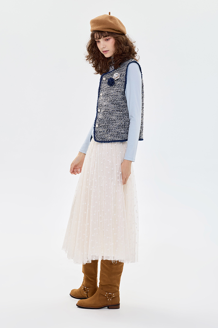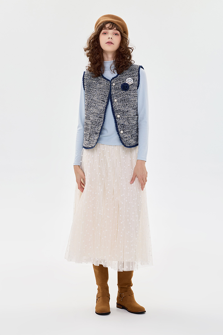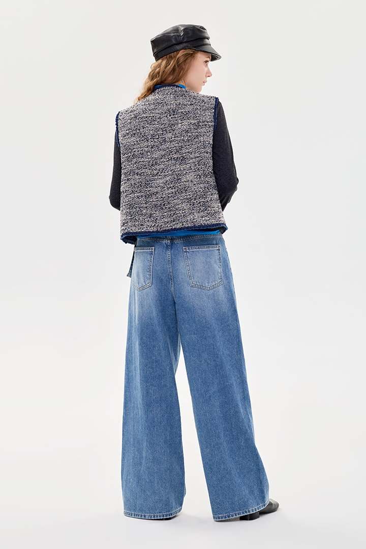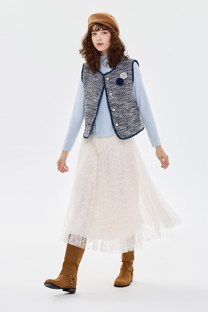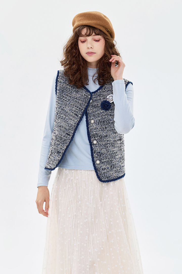 花呢質感立體,羊毛保暖有挺度,背心剪裁俐落好搭配。