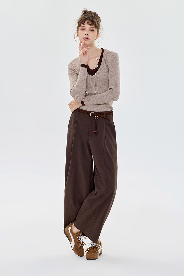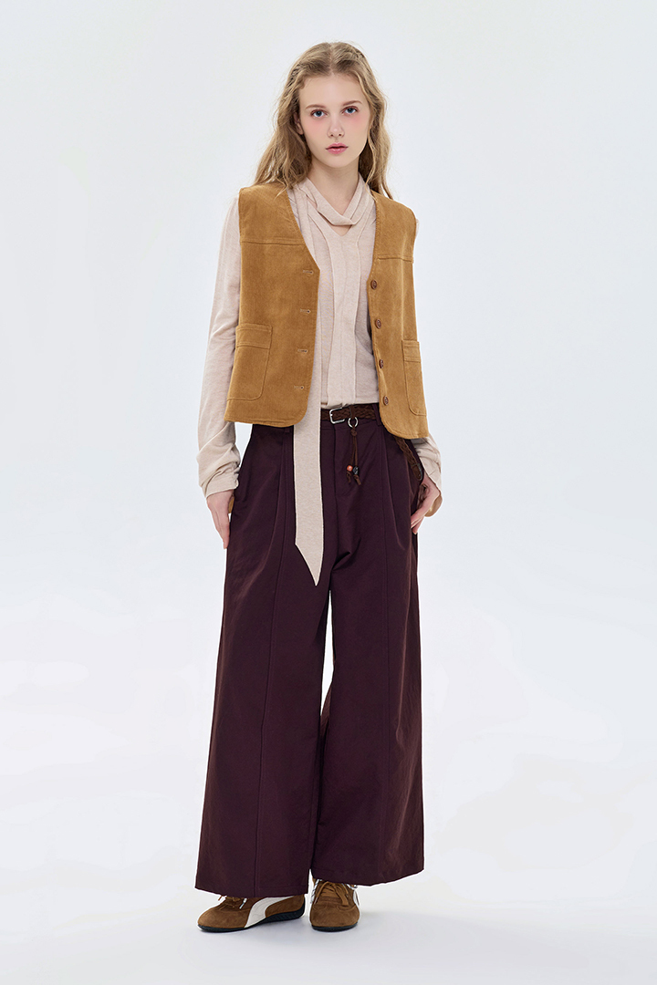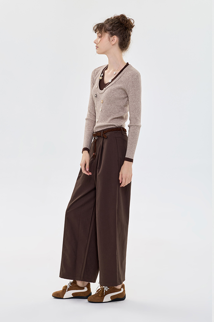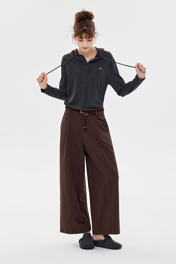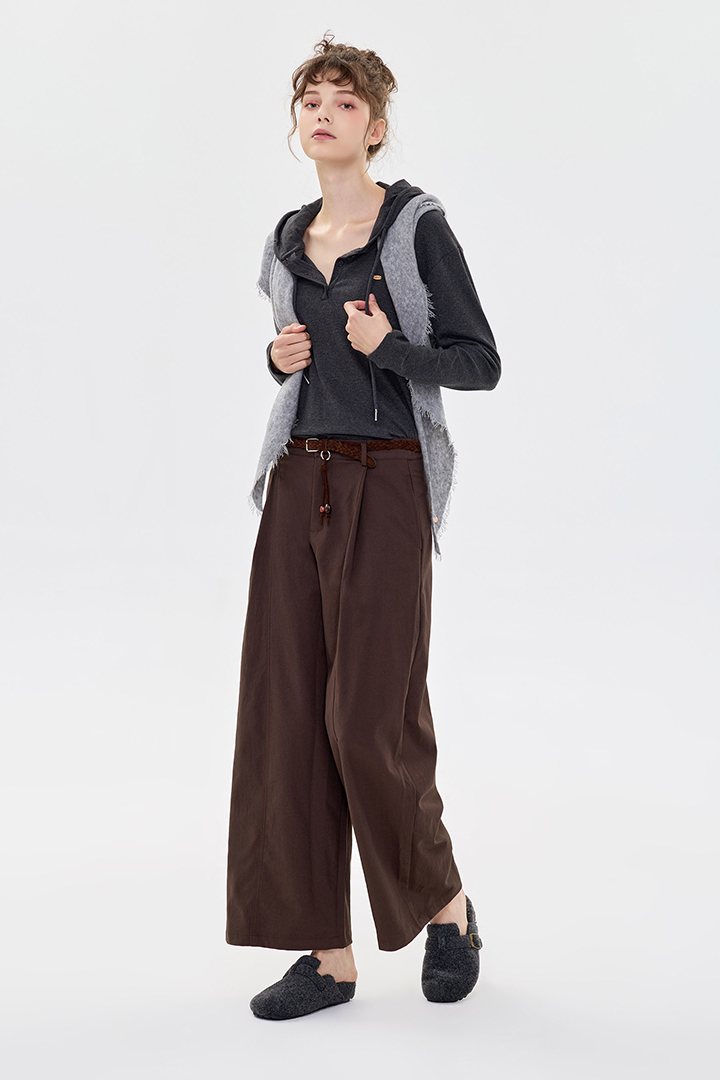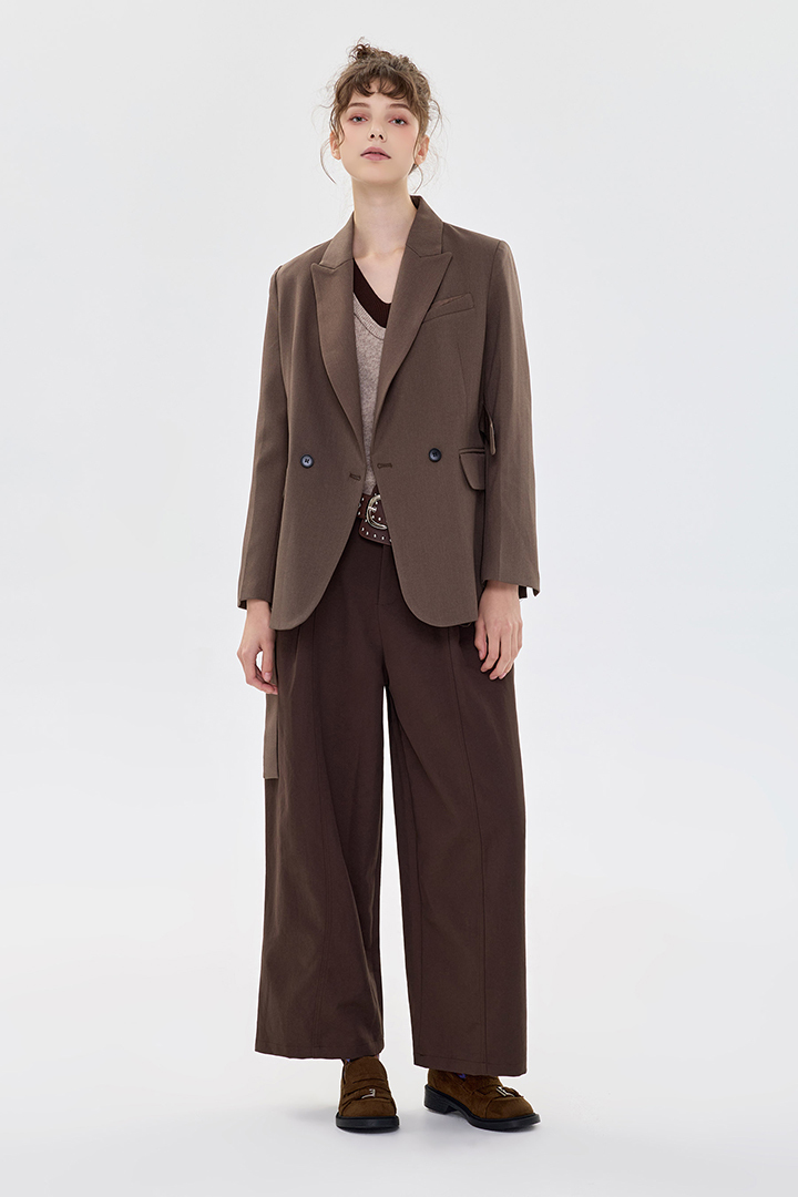 打摺提升立體度,寬版剪裁順修腿型,布料挺順不貼身。