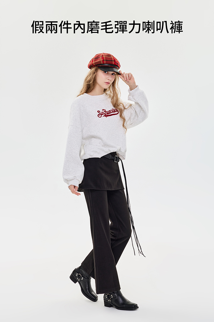 裙片層次提升設計感,內磨毛保暖舒適,喇叭版型俐落修長。