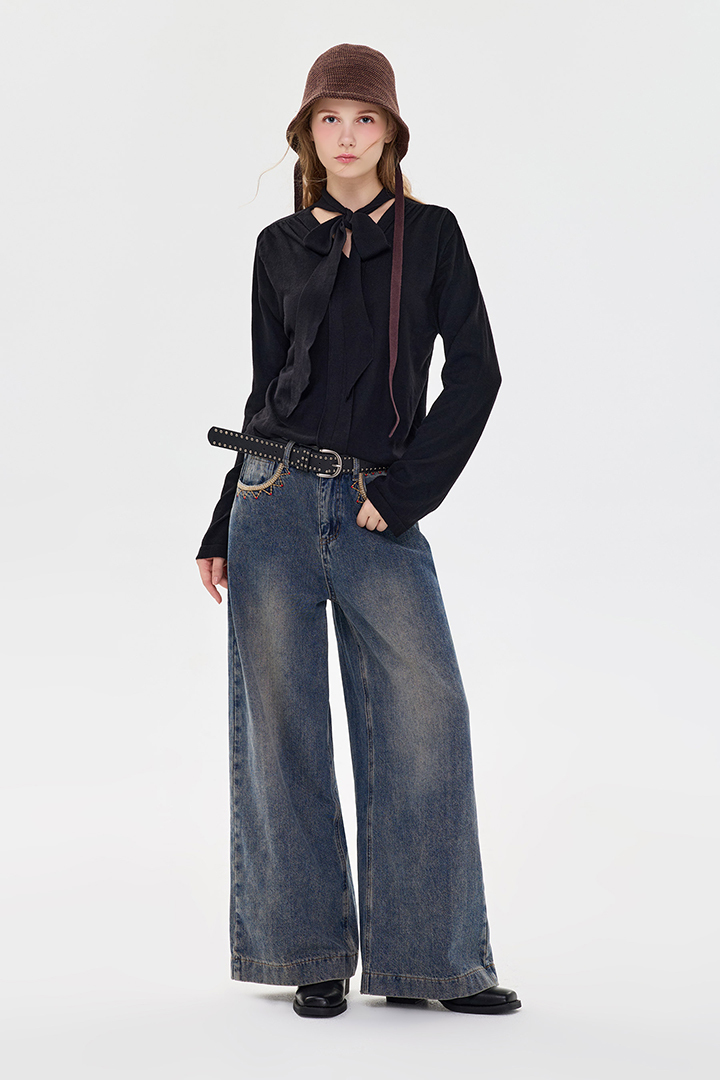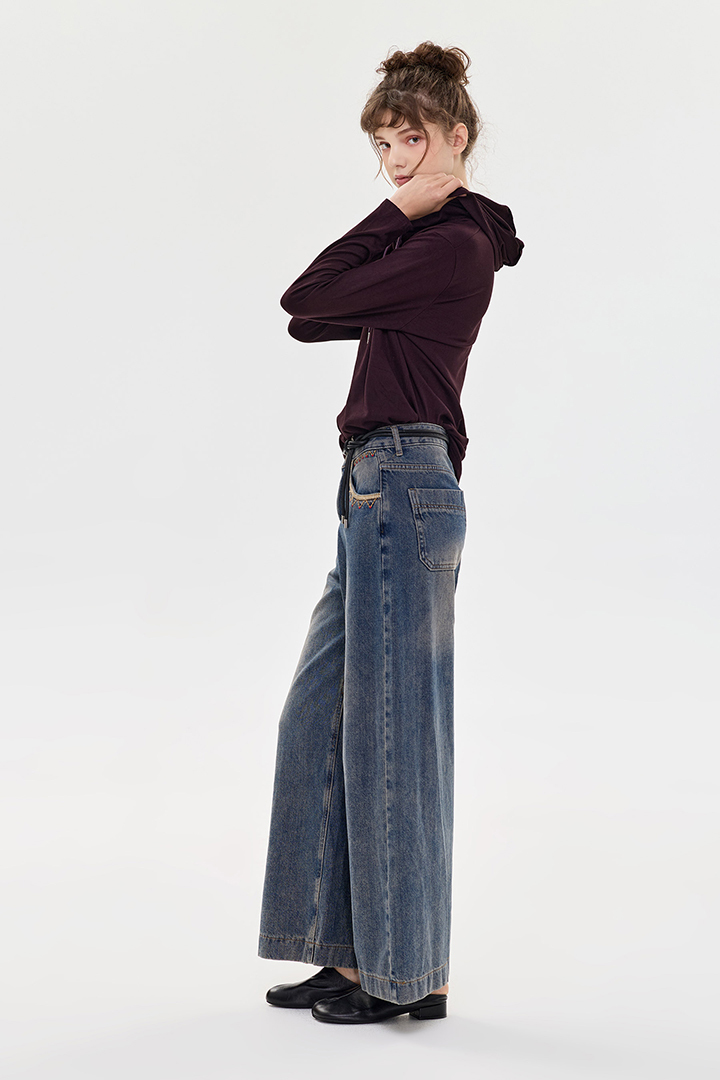 ✦做舊復古洗色直筒闊腿,簡單穿搭展現隨性街頭風