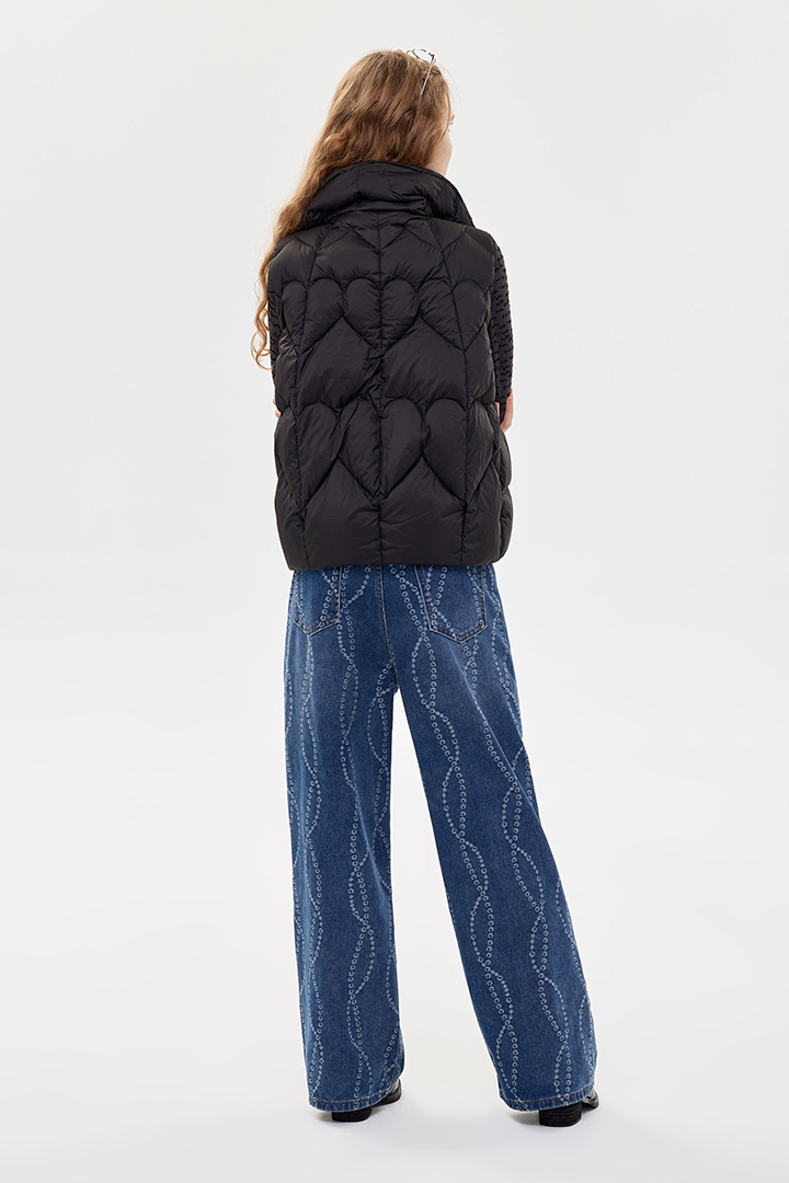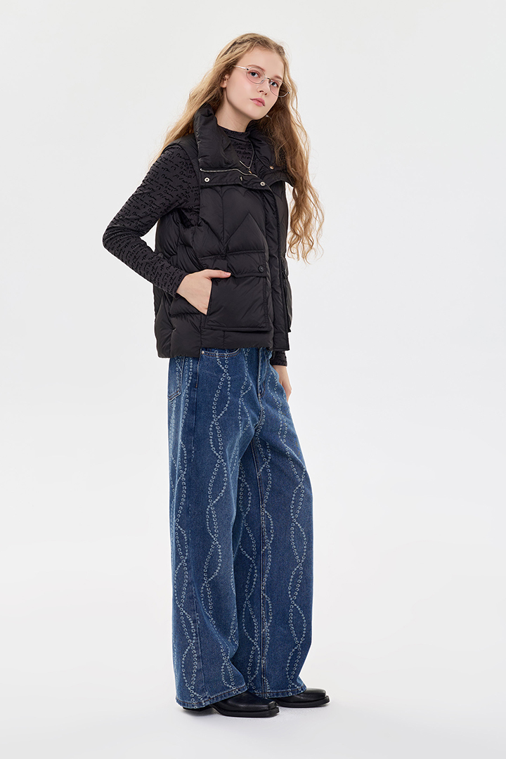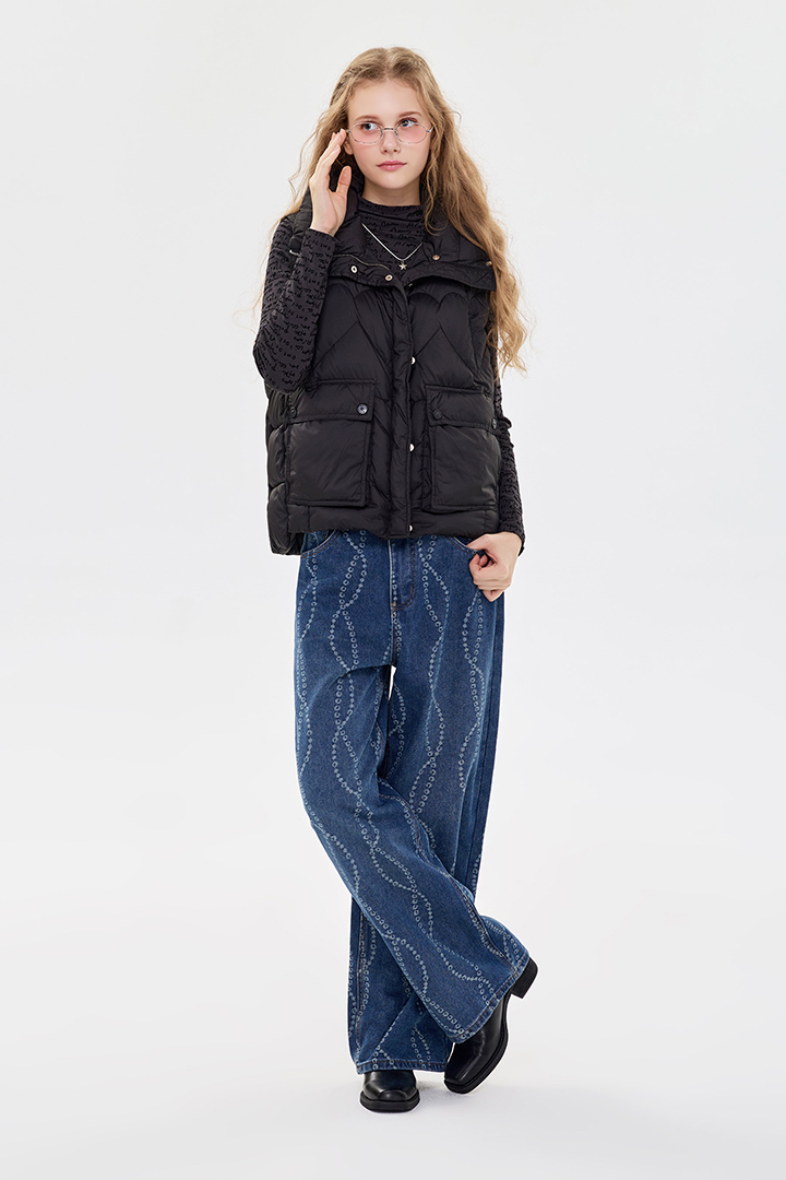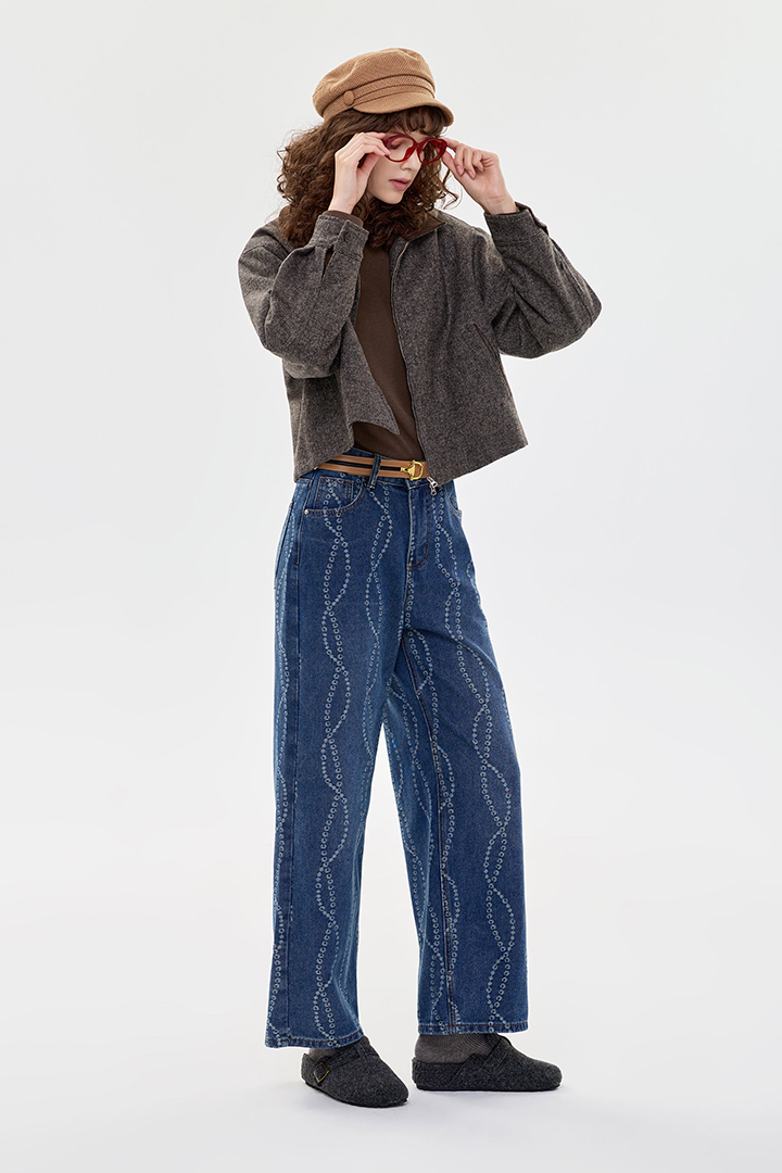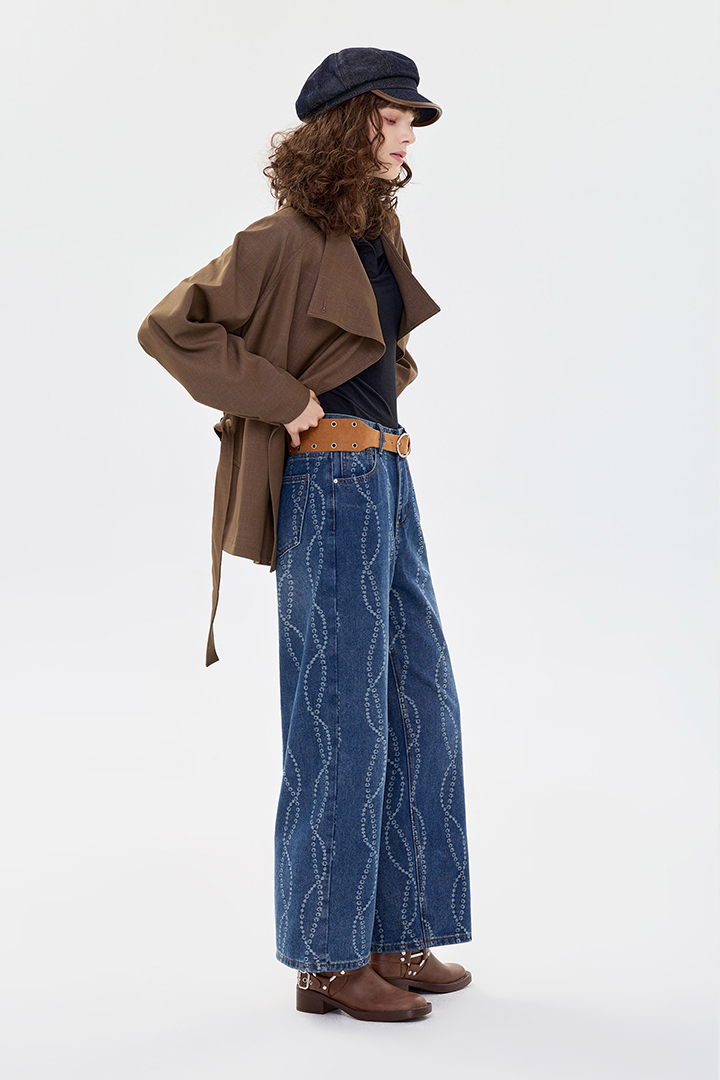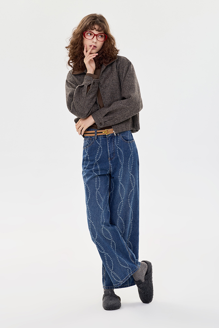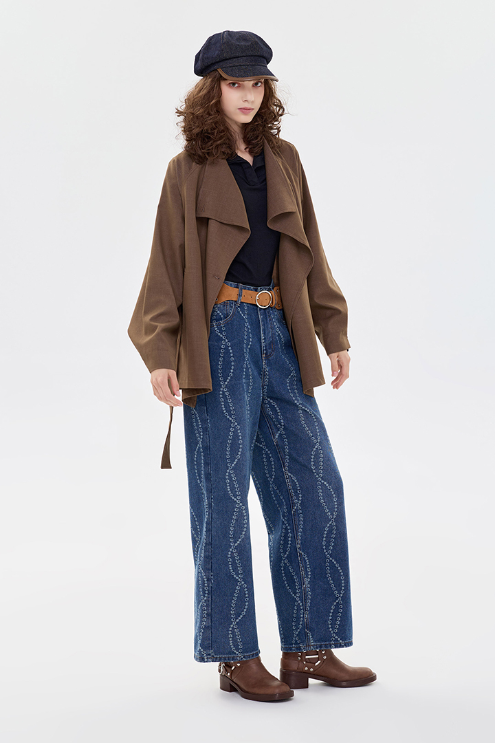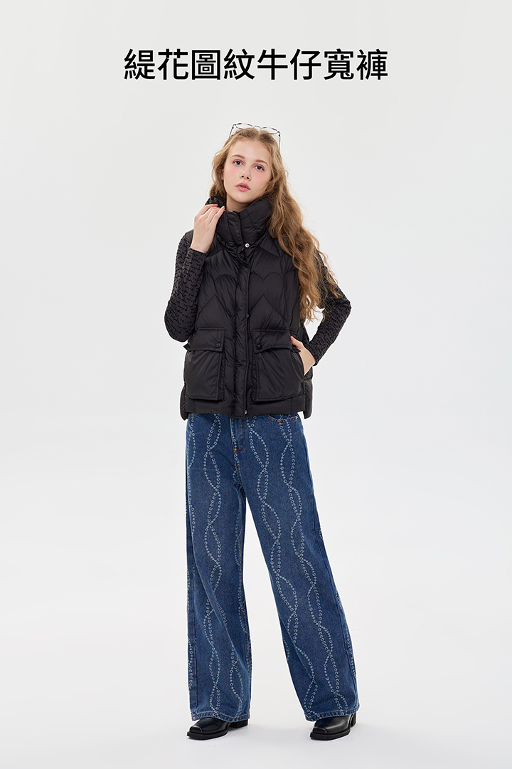 緹花圖紋精緻立體,牛仔布挺順耐穿,寬版線條更顯俐落。