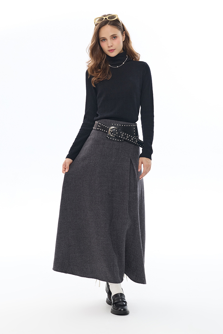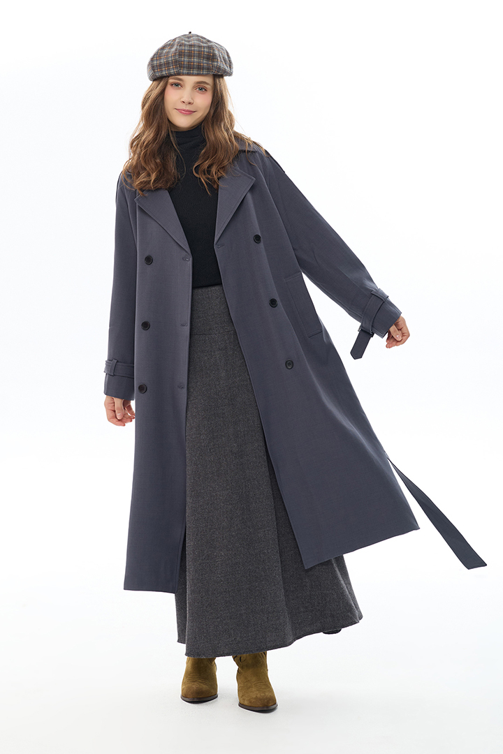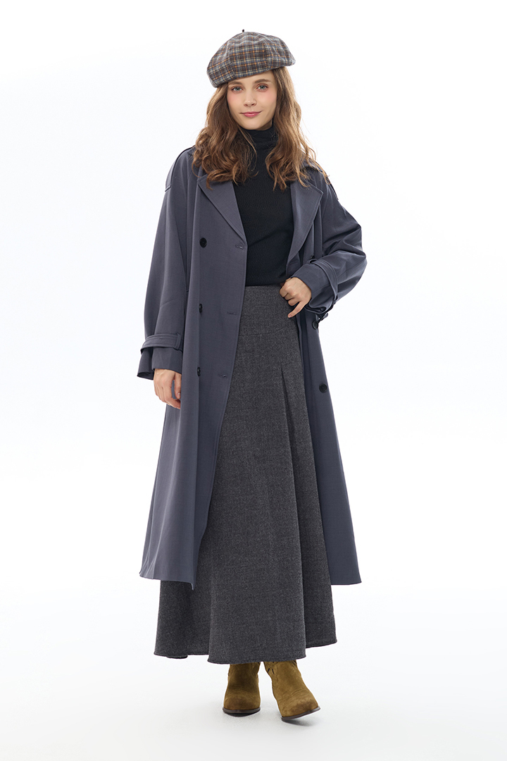 前摺線條拉長身形,厚實毛料營造冬日俐落感