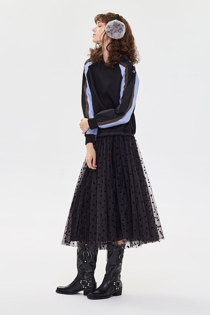 點點閃亮裝飾,百褶紗裙垂順輕盈,版型立體增層次感。