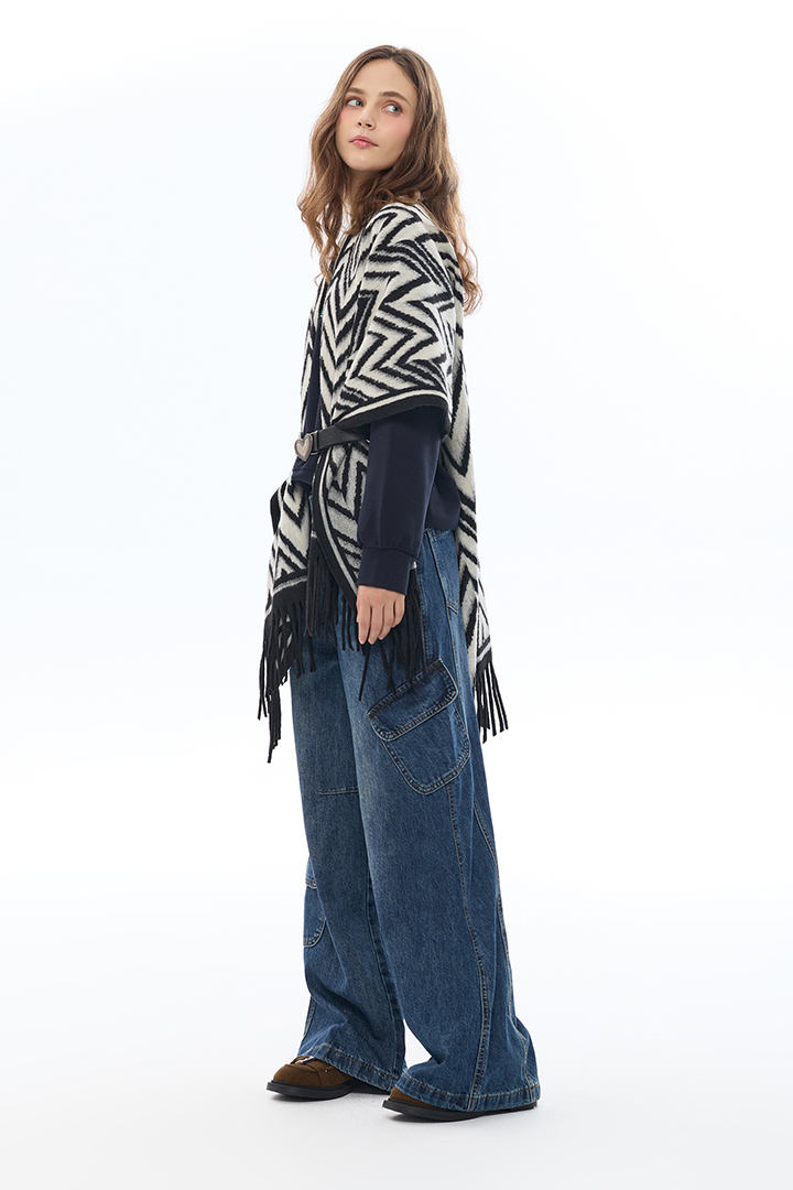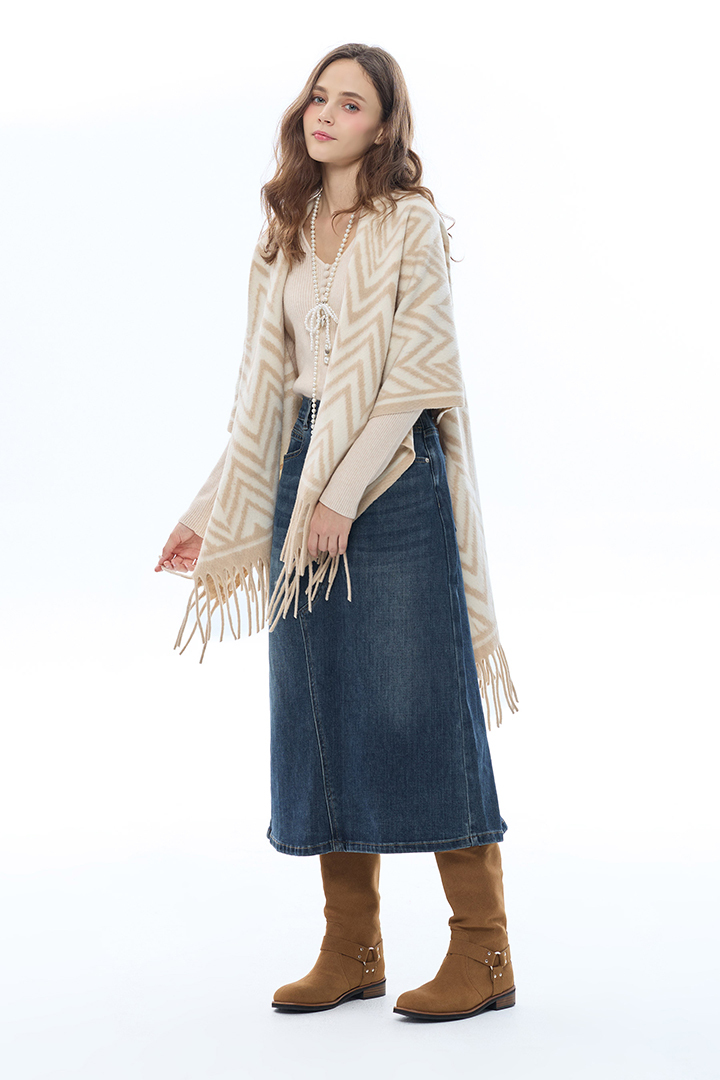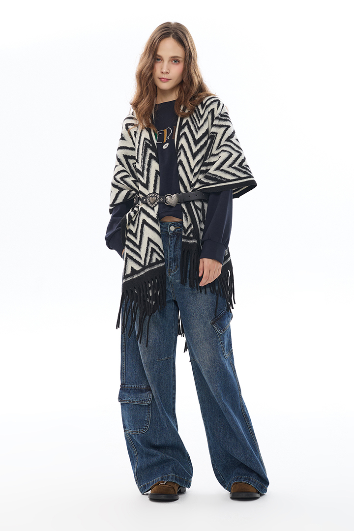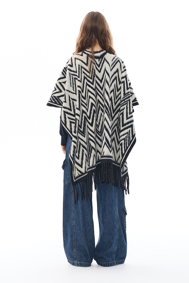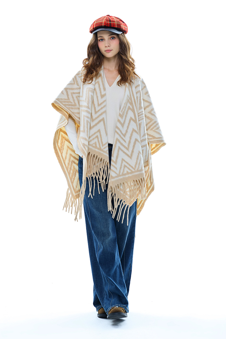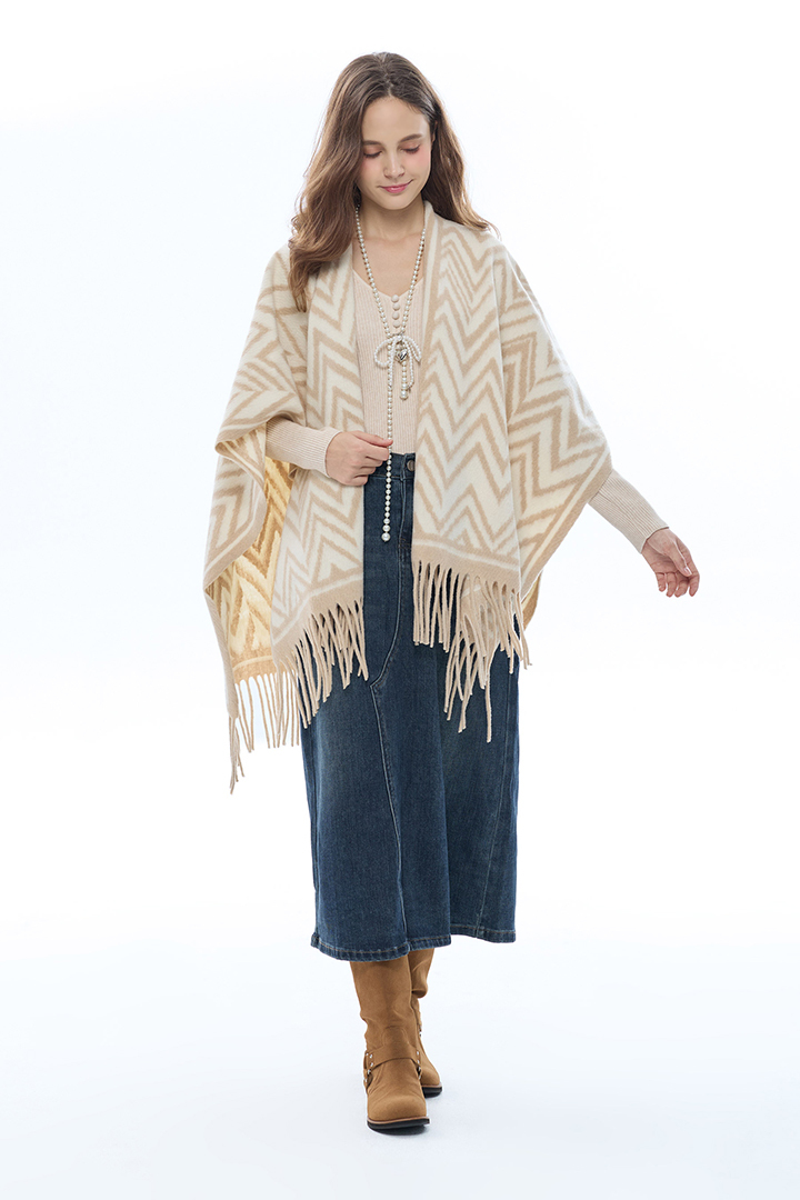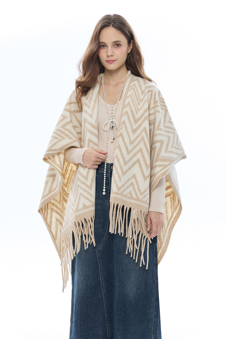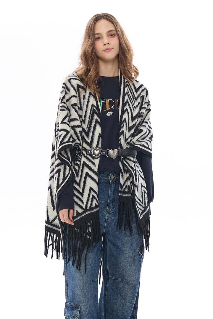 圖騰流蘇披肩柔暖舒適,冬日層搭必備,增添造型感與保暖度