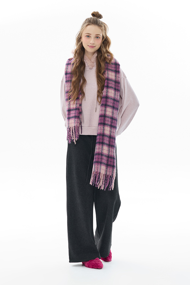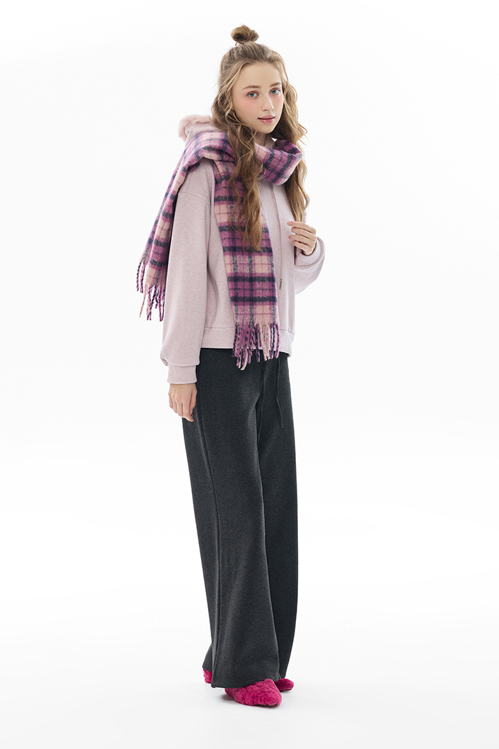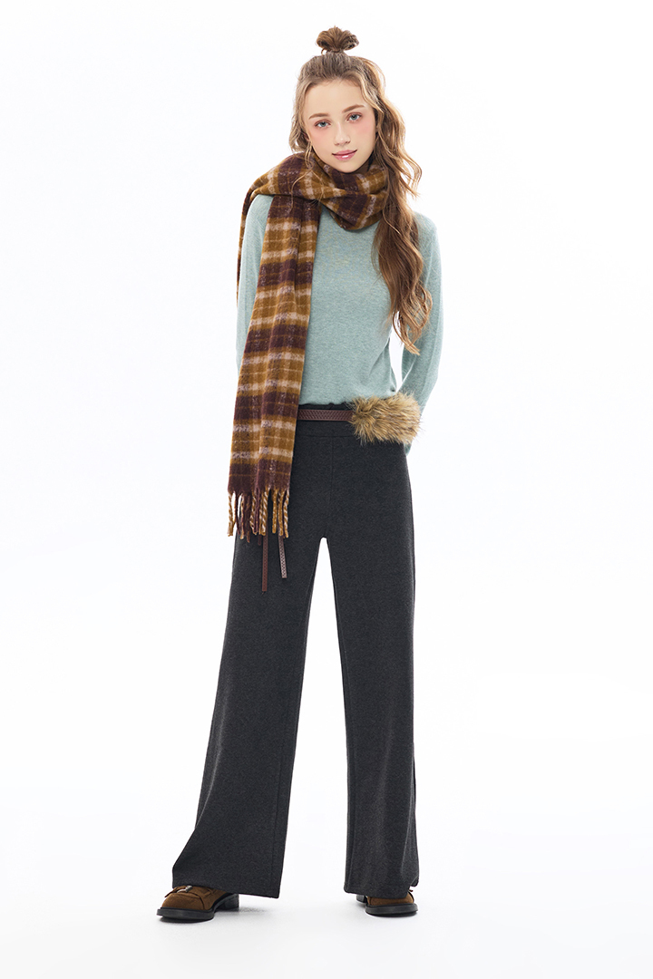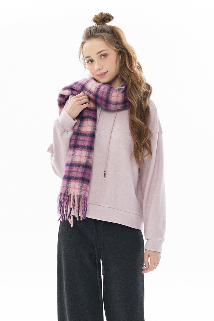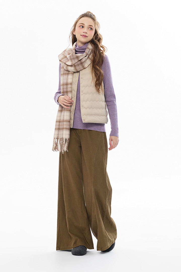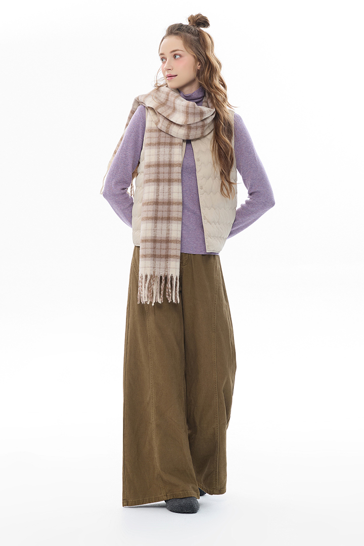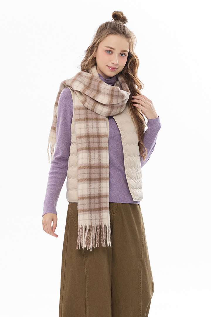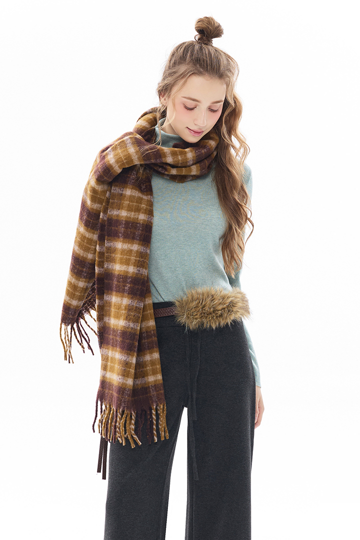 暖調格紋交織溫潤質感,包覆頸間暖意,冬日造型層次亮點