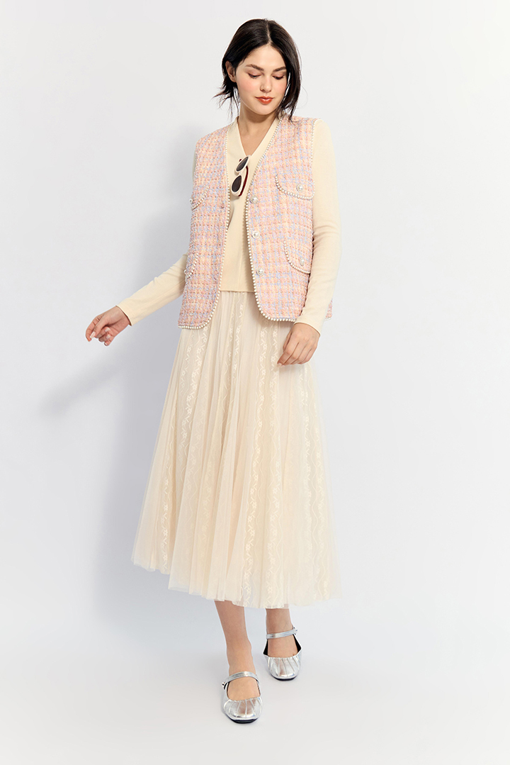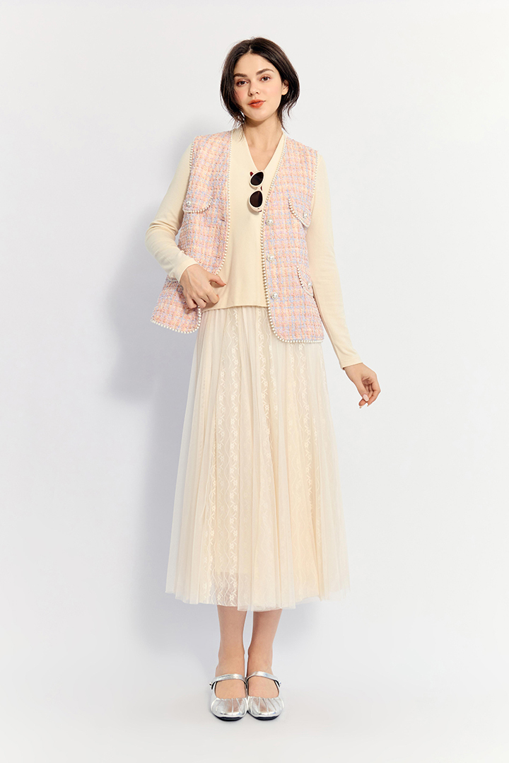 觸感柔軟細緻,近似羊絨的親膚質地,兼具輕盈與保暖效果。