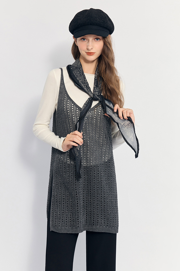 觸感柔軟細緻,近似羊絨的親膚質地,兼具輕盈與保暖效果。