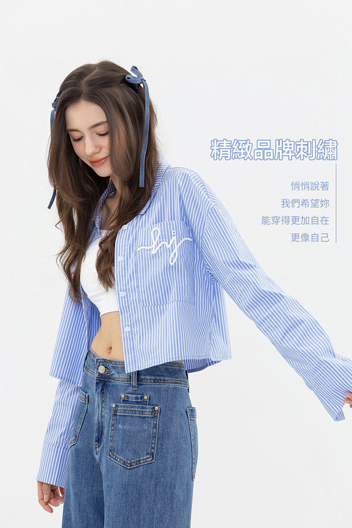 短版襯衫,清爽條紋,上班休閒都合適