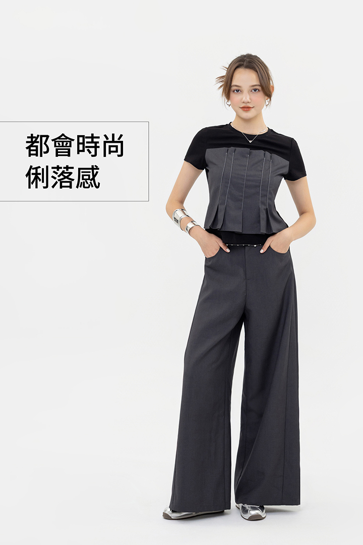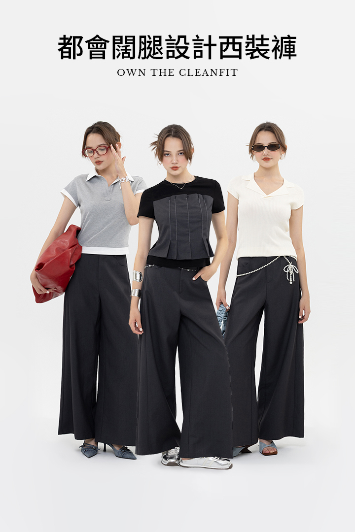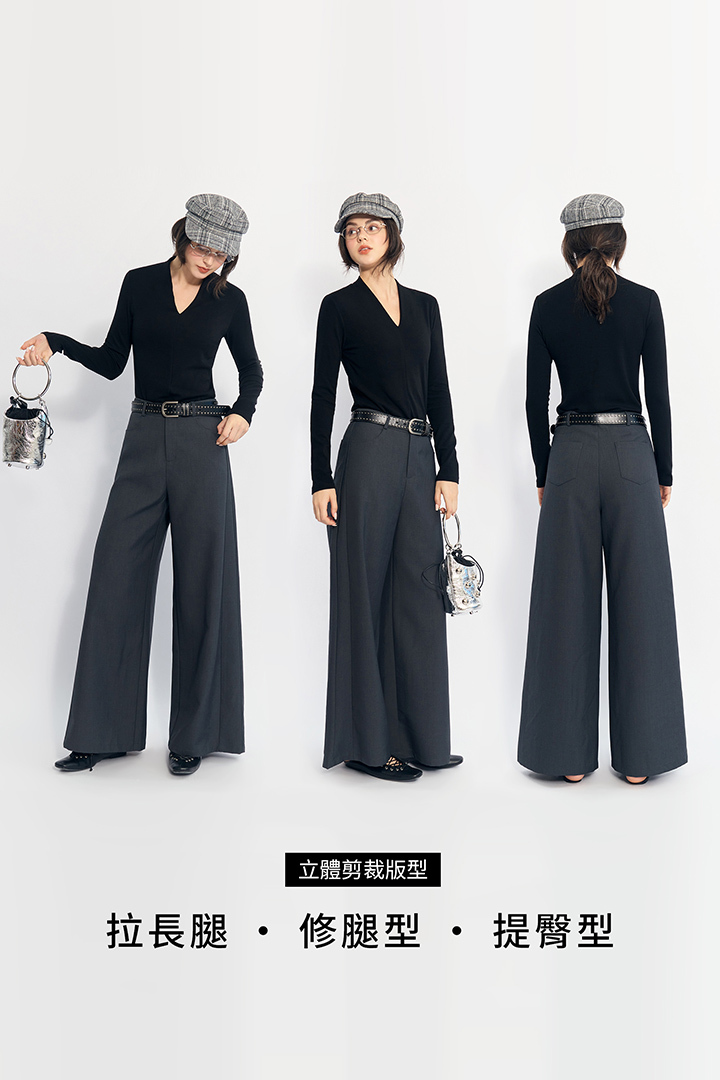 顯瘦闊腿設計,塑造高挑俐落比例。