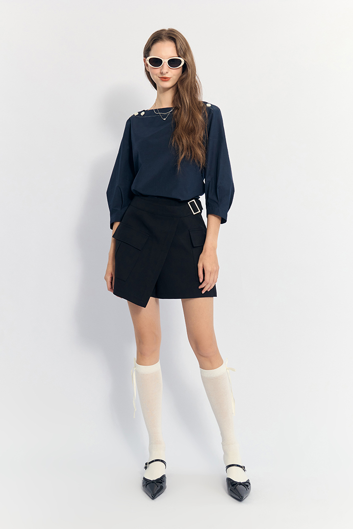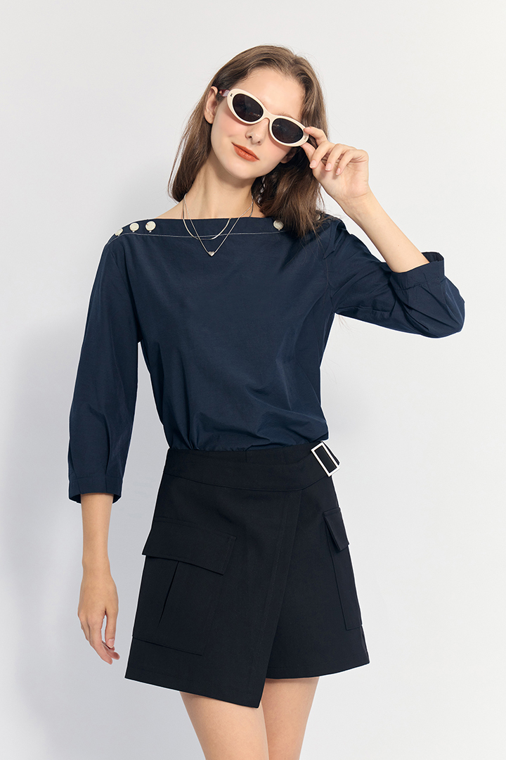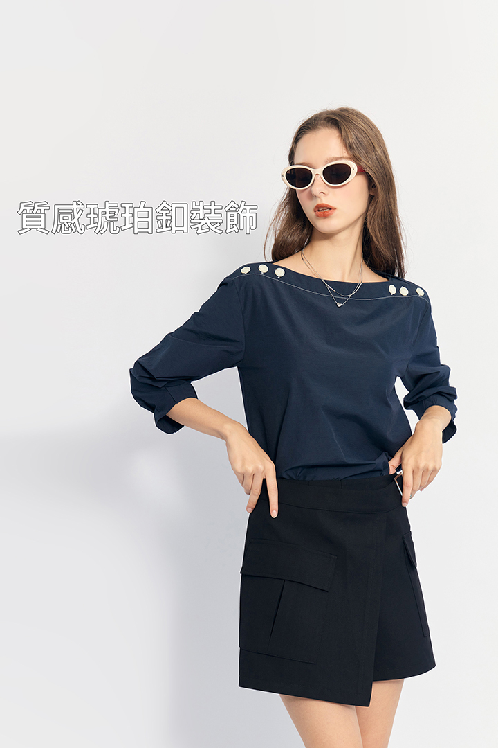 ✦一字領 側邊扣造型 通勤 休閒皆宜
