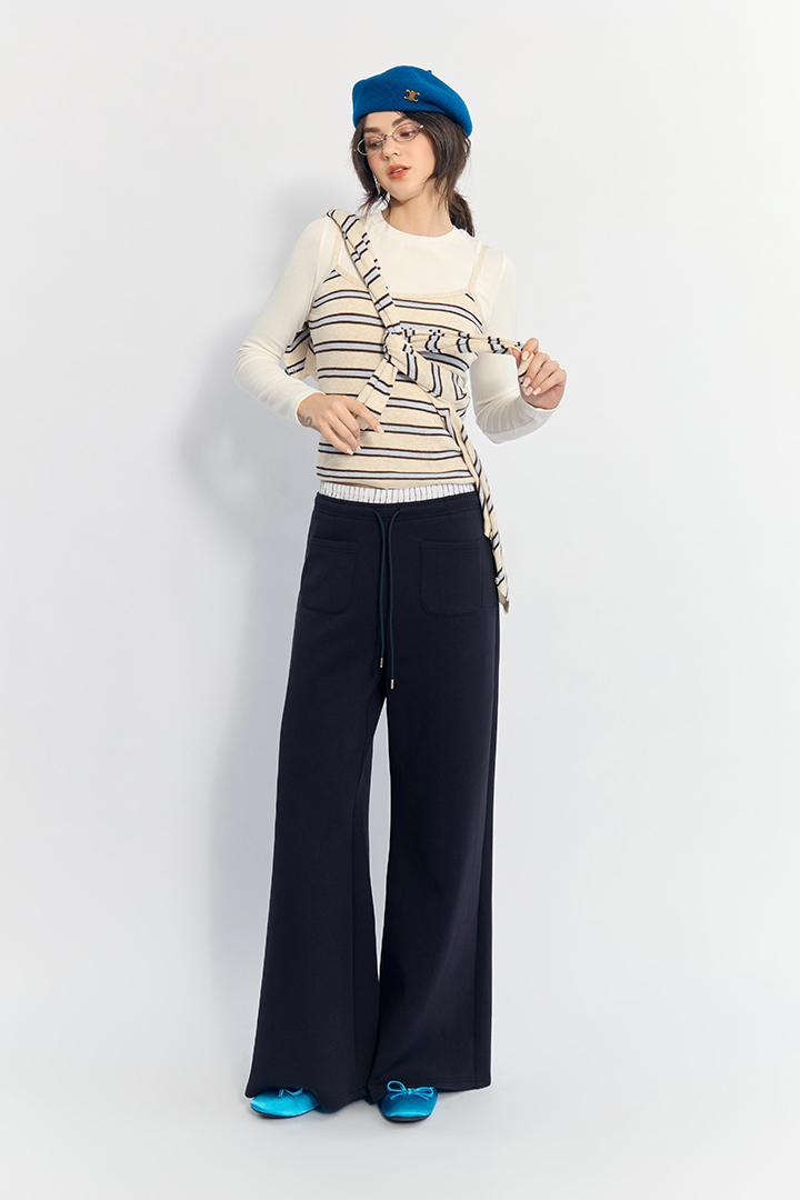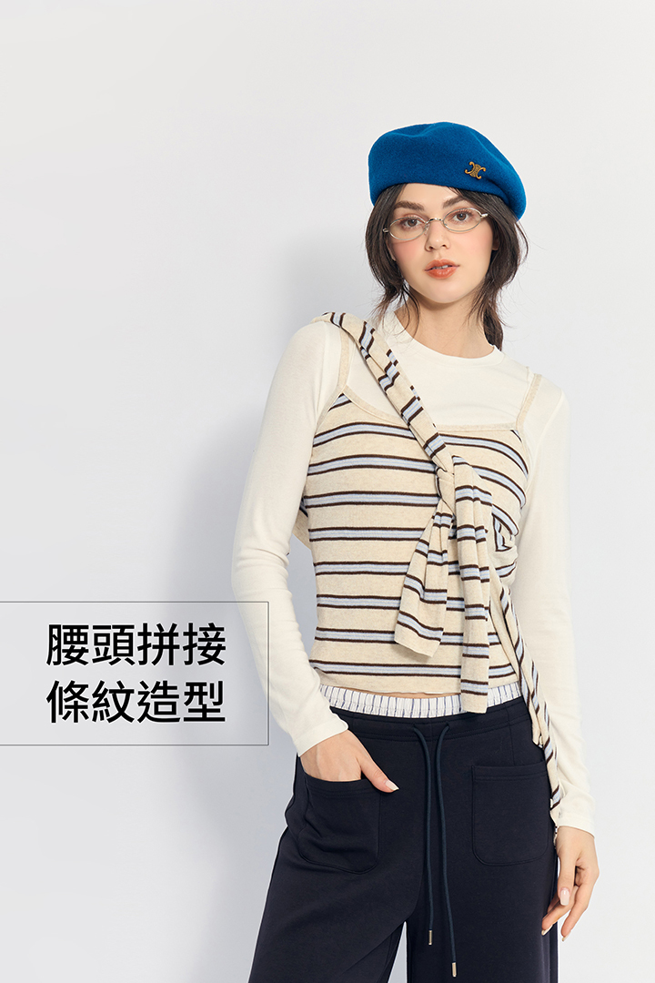 條紋鬆緊腰頭設計,彈力空氣棉材質,修飾腿型,穿出大長腿。
