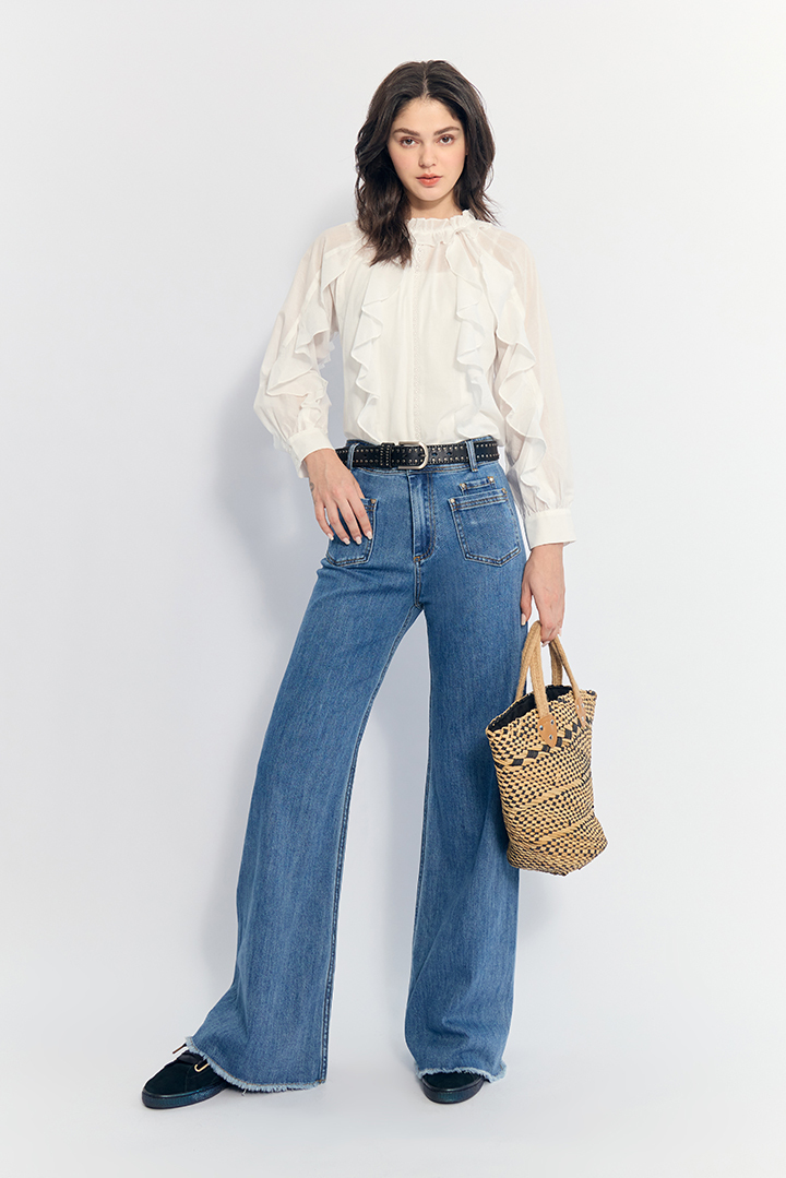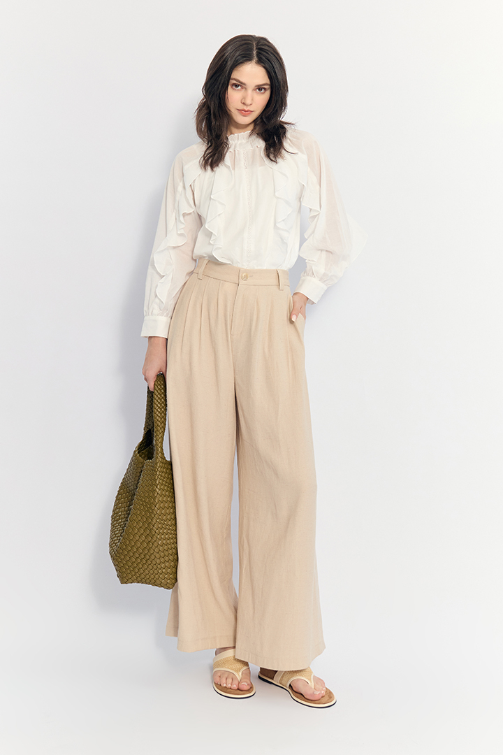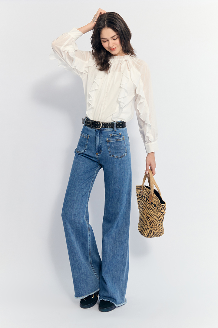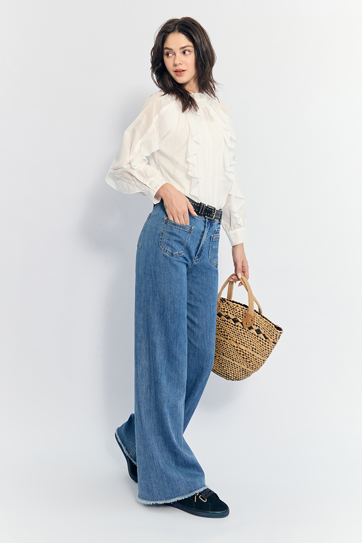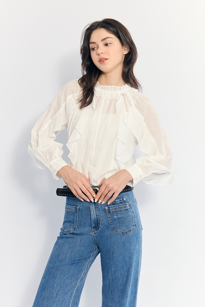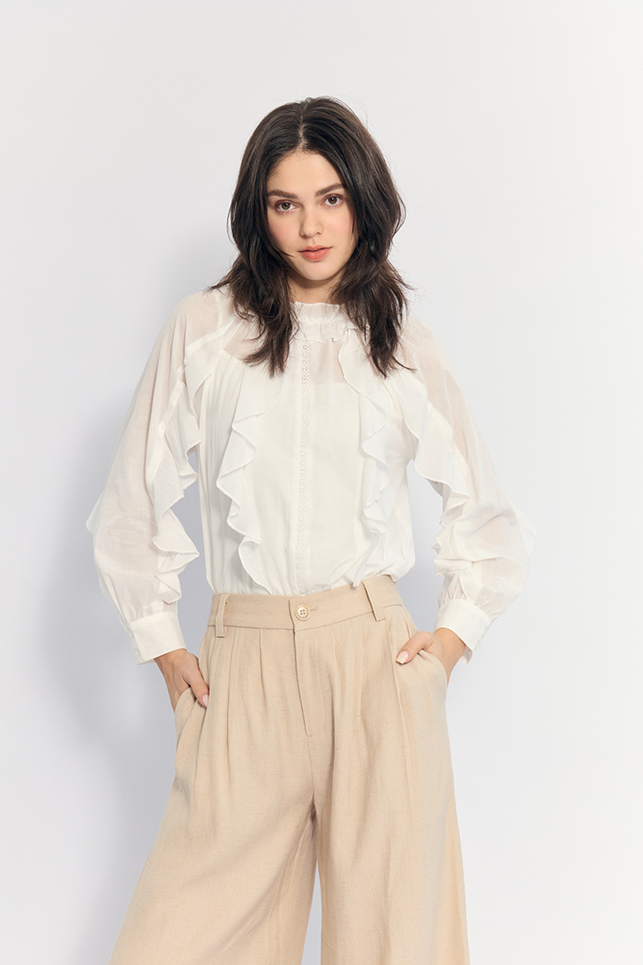 浪漫風荷葉袖圓領設計,輕盈飄逸顯氣質。