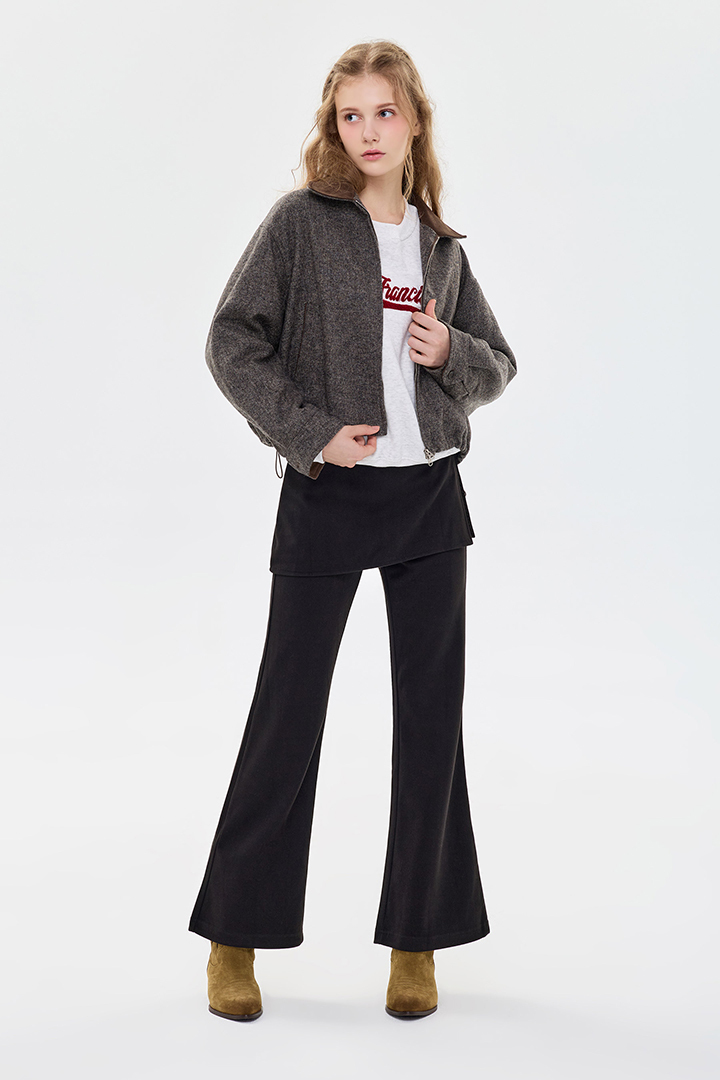 撞色皮領提升層次,羊毛呢具保暖挺度,版型結構俐落有型。